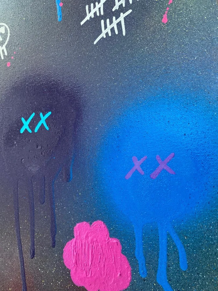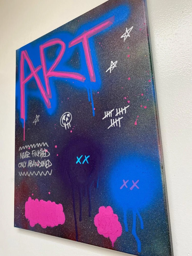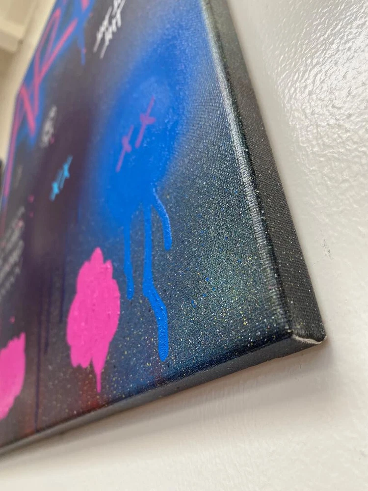 Mixed Media on a Premium Satin Canvas. Canvas has complete coverage on all sides. Lightweight and comes with easy to install hanging hardware. See all photos for how it looks in different lighting and at different angles. Inspired by New York City, it's street art, subways and lifestyle. I grew up surrounded by New York City and Jersey City Street Art and Graffiti at every turn, and famous artists like KAWS, so naturally I did graffiti myself, and still do to this day. This is one of my latest pop art pieces including graffiti and abstract art. Title: Art Description: This is a new original pop art street art graffiti and abstract artwork which used acrylic paint and spray paint. Each canvas & print will be signed on the front and back. Size: 16"x20" Options: Have a special request, question, interested in a painting not shown or interested in commissioning me to create or recreate a specific painting? Contact me. Additional Painting Details: Color may differ slightly than depicted due to variances in computer screens. International Order buyers are responsible for any customs duties or fees. Seller not responsible for anything once it is shipped and leaves the US. Artist Background: Originally from Jersey City & New York City, now residing in San Diego, I have an extensive background in Art. I studied art going back to artistically talented classes in the days of high school and earlier, and then on to New Jersey City University and Monmouth University. I have had my Art featured in exhibitions & galleries, on websites, and at businesses. My art is comprised of Acrylic & Mixed Media paintings on wood, pallets/skids, canvas and anything else that I can find to make a good pallet, sketching, drawings, graphic design, original characters, and photography. For my paintings I use Acrylic & Spray Paint and experiment with a mix of some other mediums and methods. I try to create fresh and unique abstract, contemporary and modern paintings that are open to interpretation yet have certain inspiration behind them. I have been inspired by, enjoyed & admired the likes of artists ranging from Jackson Pollock to Andy Warhol, Van Gogh to Monet, Walt Disney to Chuck Jones, Matt Groening to Stan Lee, and Tim Burton to Wes Anderson. Some notable work includes art for companies ranging from Disney to Coca Cola, M&M’s, Starz Network, Google, as well as experience as a Creative Director and Art Director.