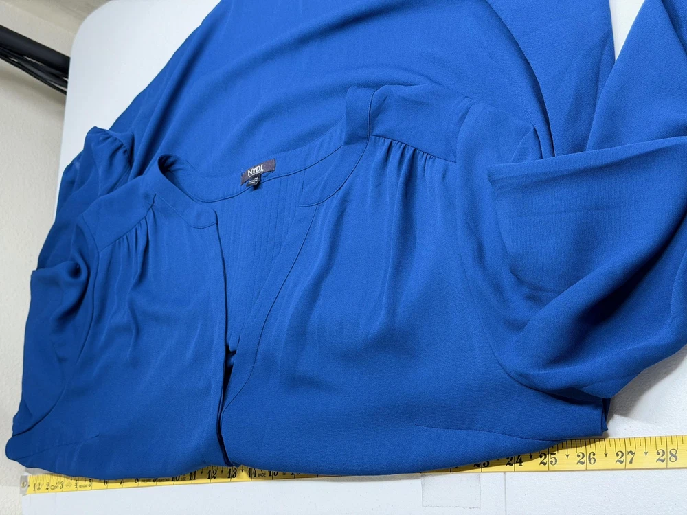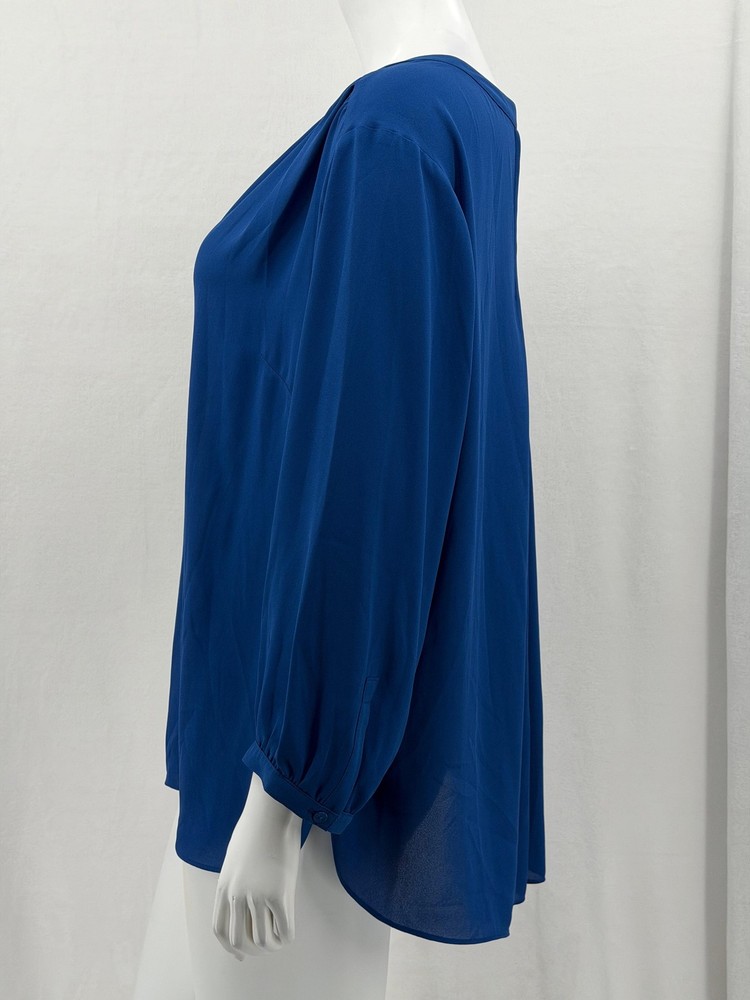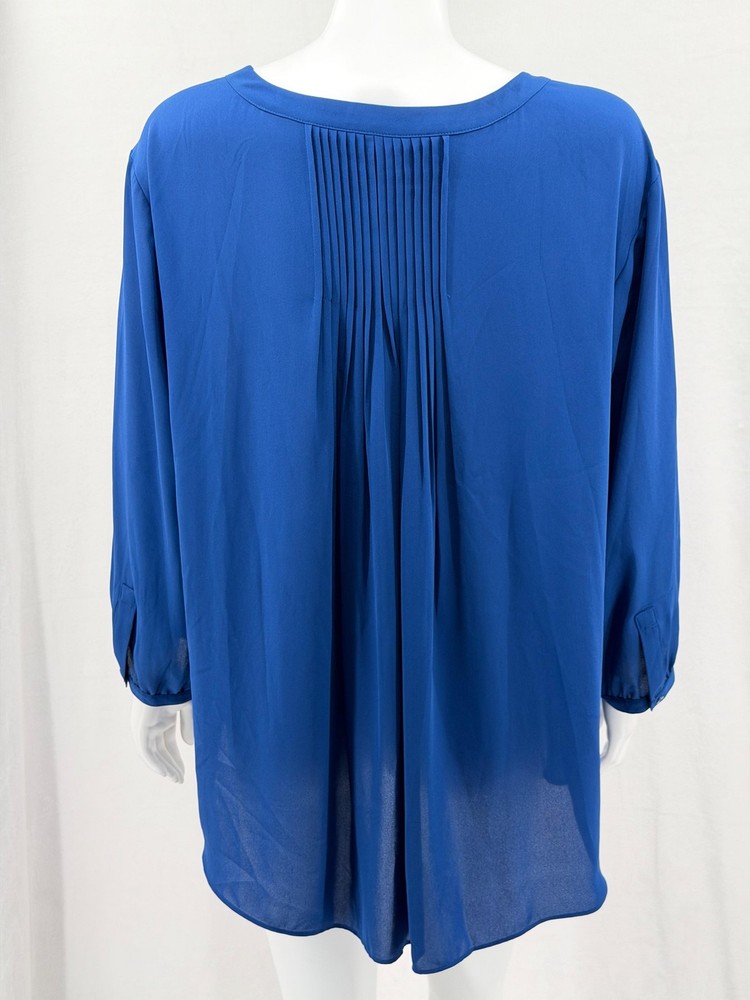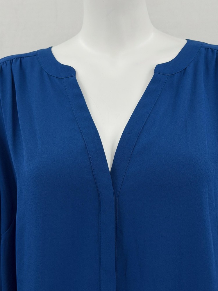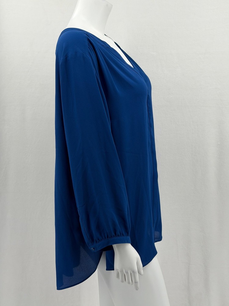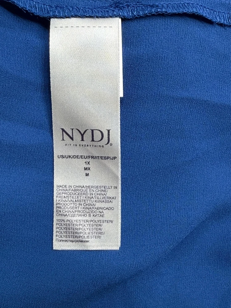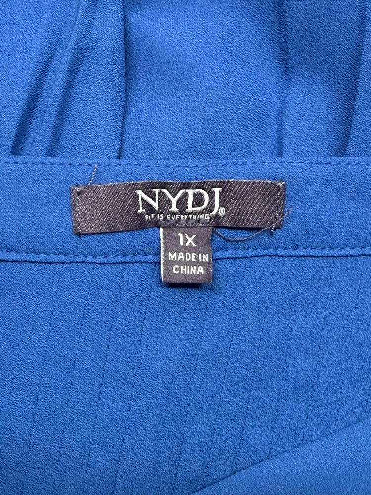 NYDJ Top Womens 1X Blue Sheer V-Neck Button Up 3/4 Sleeve Office Work Classic Excellent preowned condition (see photos for more details and measurements) Capsule Staple Travel Commute Comfortable Sleek Modern Dressy Lightweight