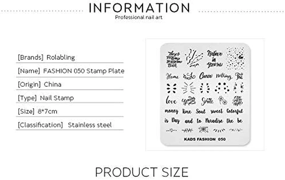 Store New Arrivals Add to Favorite View Feedback Contact Nail Stamping Plate Fashion Party Letters Words Dots Drop Theme Multi-Pattern Stamp Print Image Stamp Template Nail Art for Nail Design by Description Style Fashion Material Stainless Material Type Stainless Style Name Fashion ☛BETTER QUALITY☚:Compare with other product, the plates are made of higher quality stainless steal material. ☛INVENTIVE DESIGN☚:The inventive patterns are designed by our professional designer team. ☛BETTER PERFORMANCE☚:Compare with other product, the plates are performed more lasting. ☛EASY GUIDE☚:We provide a easy&complete guideline to follow. ☛FAVORABLE SERVICES☚: We will respond your any question as soon as possible. You do not need to worry about the product problem. Item Name : Nail Stamping Plate Fashion Party Letters Words Dots Drop Theme Multi-Pattern Stamp Print Image Stamp Template Nail Art for Nail Design By Rolabling Quantity : 1 pc Material : High Quality stainless steal material Feature : √Unique Stamping nail image √Long-lasting performance √Easy use for nail art learner and professional nail specialist Product Instruction : Step 1. Peel off the film and clean the plate, then apply nail polish on nail stamping plates. Step 2. Use a scraper leaned over 45 degrees and scrape excessive polish off quickly. Step 3. Press the stamper with a gentle rolling motion to pick up the pattern. Step 4. Print the images onto your nails in right position. If you have any questions, please feel free to , we will promptly enthusiastically give reply! ABOUT US We offer the best prices around on high quality products. Our E-store includes media such as books, movies, music and games while offering electronics, toys, sporting apparel, clothing, tools, general home, garden items and more. SHIPPING We are always working hard to ensure your package arrives as soon as possible. Please understand that some factors like weather, high postal traffic, and the performance of shipping companies are outside of our control. We offer free shipping to the lower 48 states and ship within 2 business days of payment, usually sooner. We do not accept P.O. Boxes. Please provide a physical address. For shipping outside of the continental USA, we only use eBay's Global Shipping Program.The item is shipped to KY and then sent to the rest of the world. International customers are responsible for all duties and taxes. Continue to check out in order to calculate costs for shipping the item to your country. Messages regarding eBay's Global Shipping Program MUST be directed at eBay EXCLUSIVELY. RETURNS We offer a 30-Day Return Policy on items which you are not completely satisfied with. You have the option for a full-refund or an exchange of the item. No returns are available on items shipped outside of the USA. PAYMENT We accept PayPal. CONTACT US This page content is yet to come Please ad us to your favorite seller and visit again later Thank You CUSTOMER SATISFACTION We try our very best to make sure every customer is completely satisfied. If there's a problem, message us! We're happy to help. WE ACCEPT Copyright © 2021 AutoDS. | All Rights Reserved