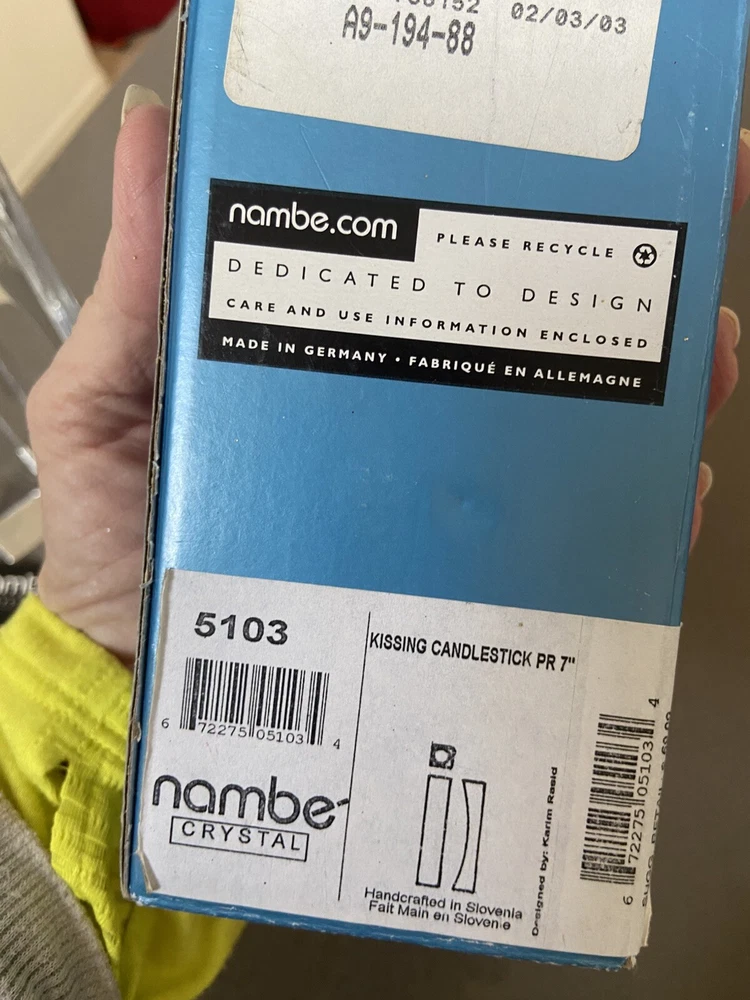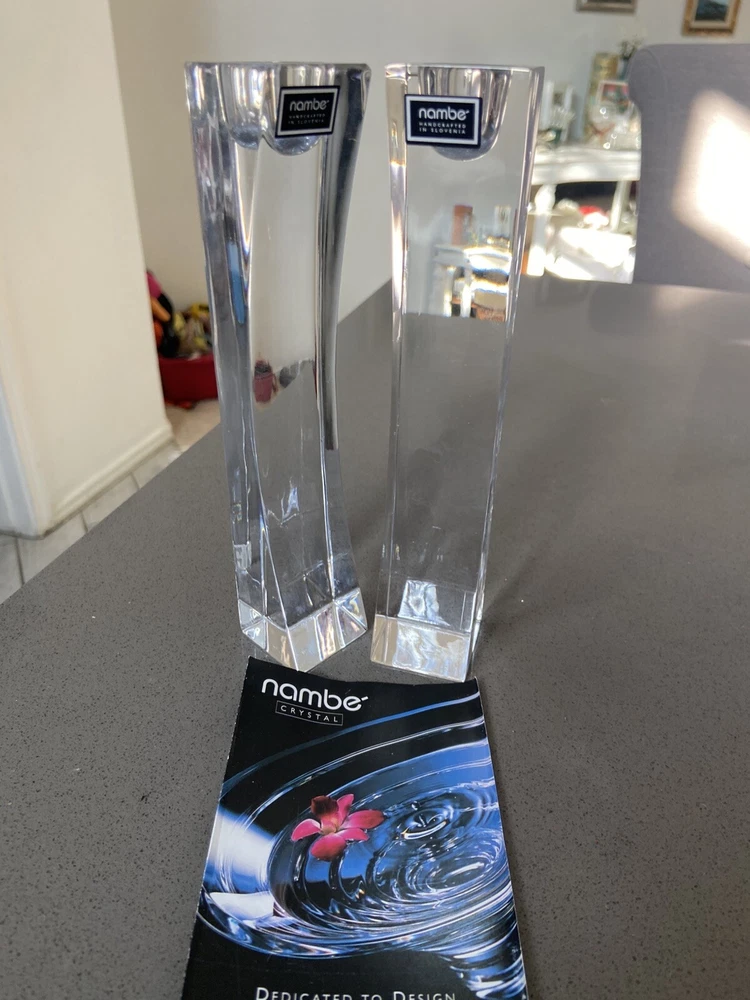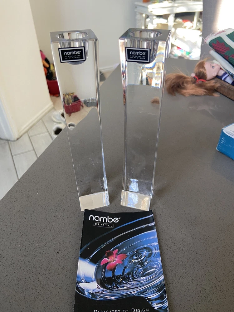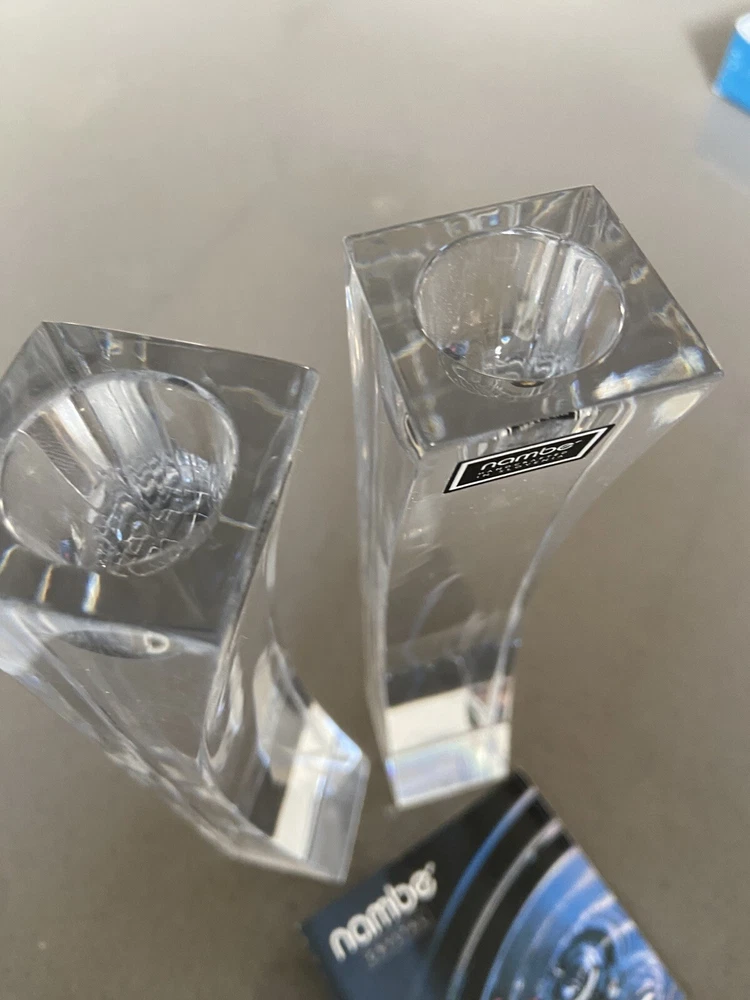 Nambe Contemporary MCM Crystal Candlesticks Abstract Modern Kissing 7”