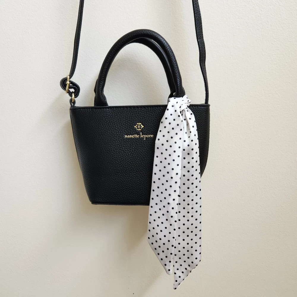Nanette Lepore Black Vegan Leather Adjustable Crossbody Bag Mini Tote Scarf - Pre-Owned in Very Good Condition - Measurements in Photos - Returns acceptable within 30 days of purchase unworn, in original condition - Check out my E-bay Store. Lots of Choices Available. Reduced shipping for 2 or more items. Let me know before you pay so I can send you an invoice to discount the shipping