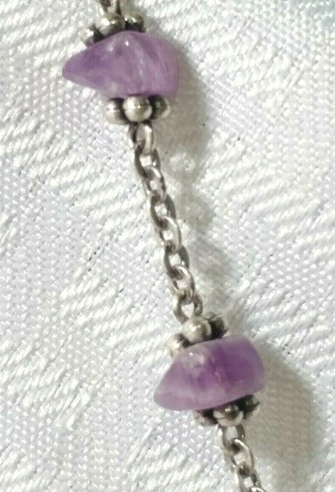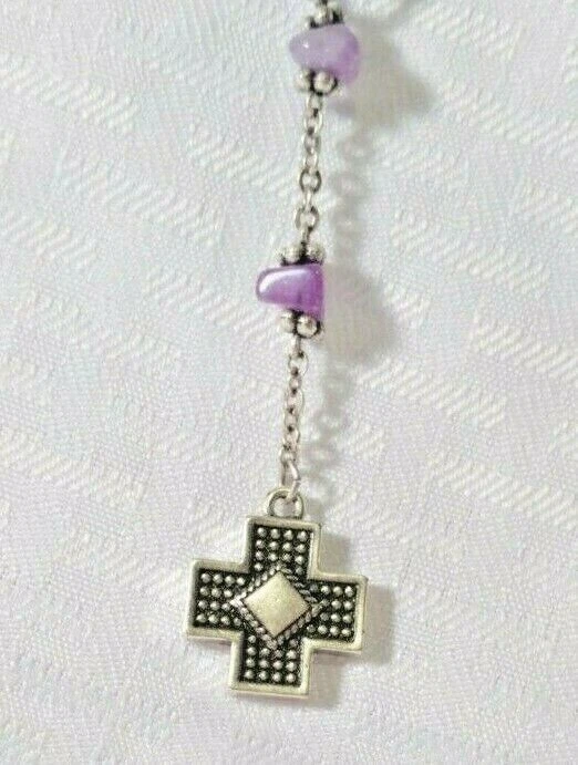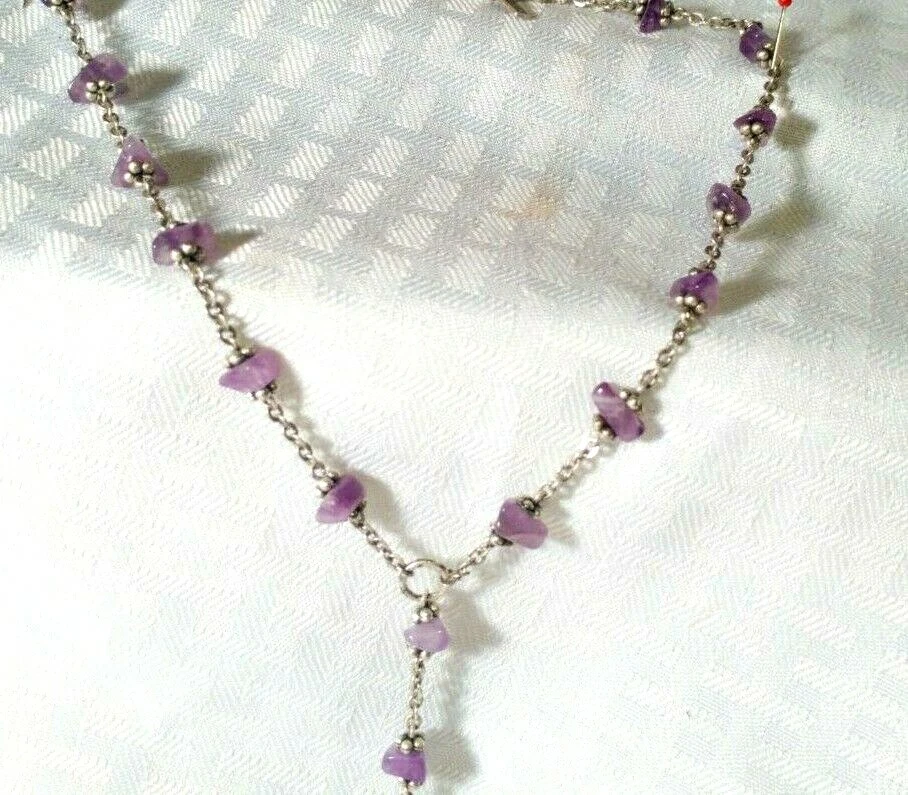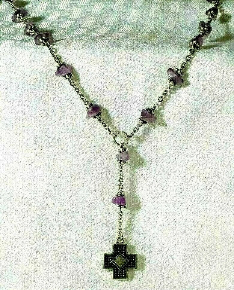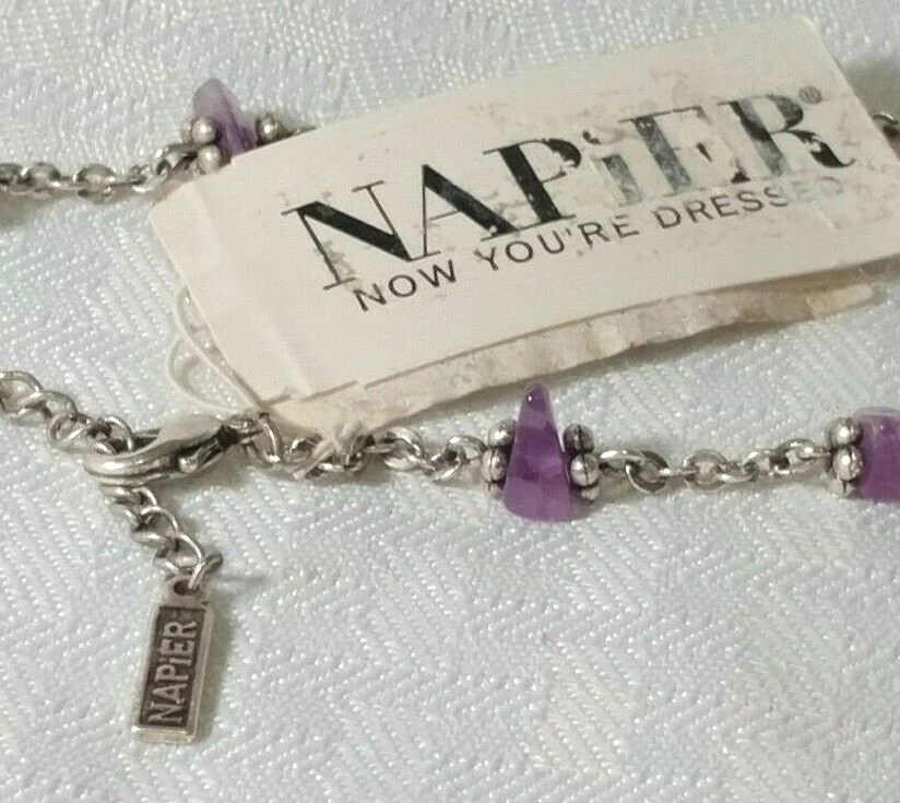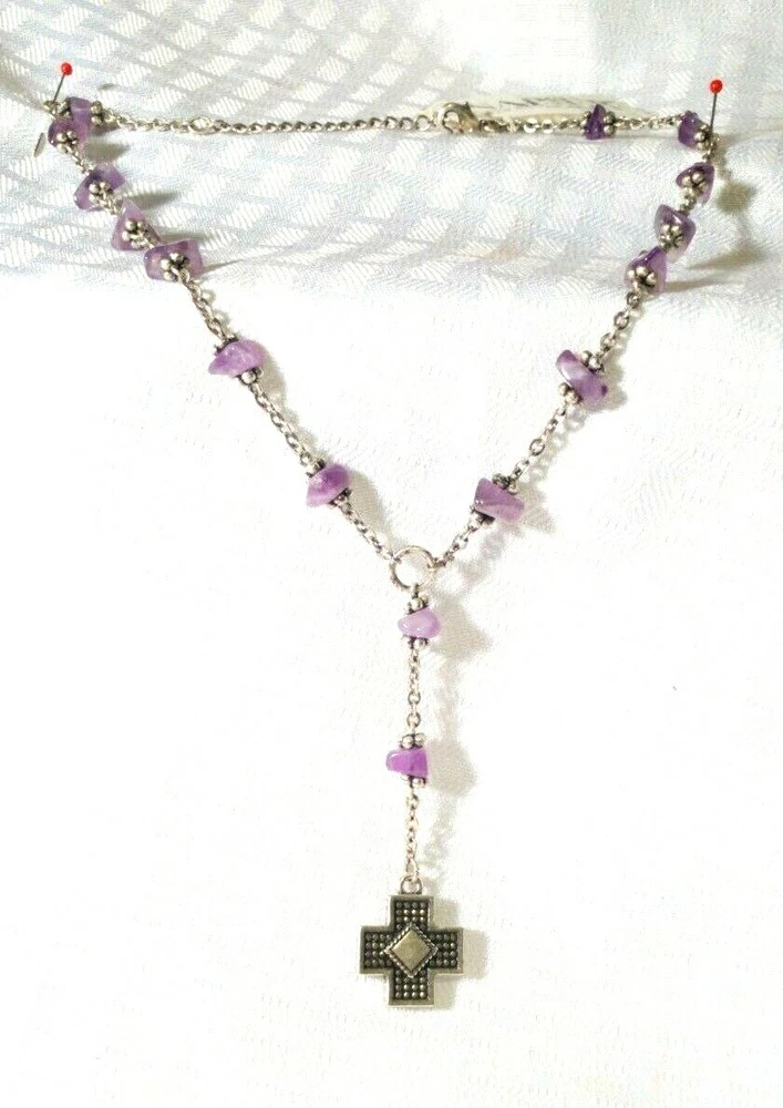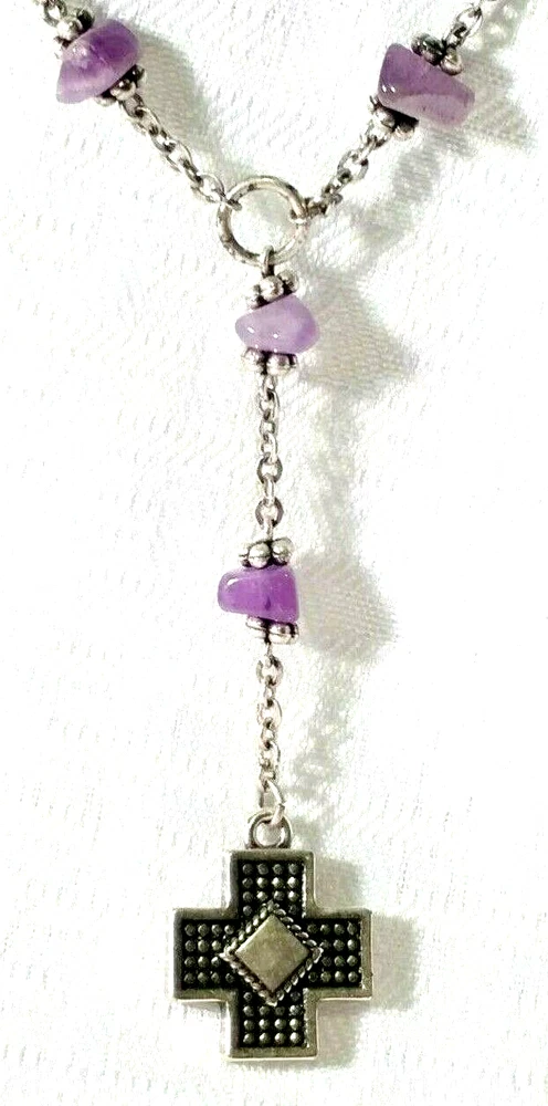 Vintage Napier Y- shaped Necklace Amethyst Stones - Silvertone Cross Excellent Condition