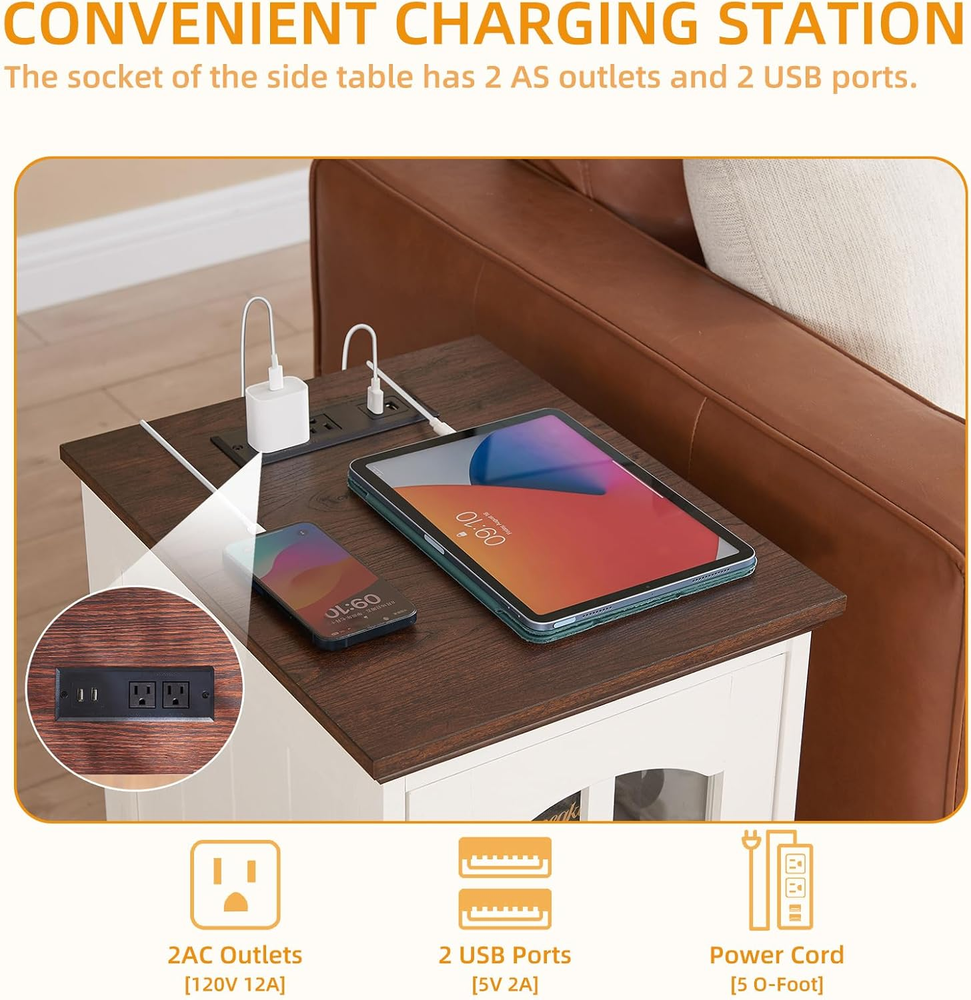 Store New Arrivals Add to Favorite View Feedback Contact Narrow Side Table Set of 2,White Nightstand with Charging Station,End Table with Glass Barn Door Storage, Cabinet Organizer with Adjustable Shelf, Night Stand for Small Spaces Living Room Bedroom Description Assembly Instructions Description Assembly required, instructions included Style Farmhouse Color White Set Name Set of 2 Product Dimensions 18 x 14 x 24 inches Material Wood Item Weight 45 Pounds Manufacturer RWYHG Special Feature Charging station Brand RWYHG Size Set 2 [Farmhouse night stand with charging station]This farmhouse nightstand boasts an exquisite appearance, adding a unique charm to your home. The combination of glass barn door and modern artistic elements enhances the elegance of the wood white bedside table, making it visually captivating from any angle. [Stay powered up]This 18'' wide bed side table features a convenient charging station with 2 power outlets and 2 USB ports, allowing you to quickly charge multiple devices simultaneously. This narrow side table is always within easy reach of a power outlet, whether it's placed next to the sofa or by the bed, making life more convenient. [Ideal Storage Size] This farmhouse nightstand with a charging station measures 18 x 14 inches, featuring a compact design that saves space. This narrow nightstand offers excellent storage capacity, with an adjustable shelf that can accommodate items of varying heights. This practical design helps keep your space tidy while enhancing the overall aesthetic of the wooden night stands, making your living environment more comfortable and functional. Sturdy and Durable: This living room furniture is made from solid, eco-friendly wood, featuring an artistic solid wood carved cylindrical base and a sturdy 1.1-inch thick tabletop. Thoughtful design ensures this side table with storage is stable, durable, and capable of supporting a significant weight. The nightstand Overall dimensions: 18" L x 14" W x 24" H. [Careful Packaging and Clear Instructions]We package our wooden nightstand set of 2 in thick foam, protective paper, and sturdy cardboard to ensure they arrive in perfect condition! Each unit comes with clear instructions, labeled parts, and assembly tools to help you complete the setup easily. Product description Elevate Your Space with Style and Convenience! Discover the perfect blend of style and functionality with our farmhouse nightstand. Featuring a charming glass barn door and a built-in charging station with two power outlets and two USB ports, it keeps your devices powered up while adding elegance to any space. Its compact design (18 x 14 inches) includes an adjustable shelf for versatile storage, making it both practical and visually appealing. Check out the video to see it in action! The video showcases the product in use. The video guides you through product setup. The video compares multiple products. The video shows the product being unpacked. side table with charging station Merchant Video 1.1'' thick desktop The tabletop of our night stand is a sturdy 1.1 inches thick, showcasing our commitment to quality and craftsmanship while adding elegance to any room Seamless Closure Our nightstand has a sleek magnetic design that ensures doors close effortlessly and securely every time. No more doors left ajar! Adjustable shelf The bedside table includes three adjustable shelves, allowing you to customize the height for items of different sizes, optimizing your storage space. Cute Legs The cabinet features unique gourd-shaped solid wood legs for added stability and strength, enhancing both weight capacity and visual appeal. White Bedroom Furniture Add to Cart Add to Cart Add to Cart Customer Reviews 4.6 out of 5 stars 294 4.5 out of 5 stars 2 4.4 out of 5 stars 83 — 4.3 out of 5 stars 141 3.9 out of 5 stars 31 3.2 out of 5 stars 32 Price $199.99 $ 199 . 99 $399.99 $ 399 . 99 — — $131.99 $ 131 . 99 — — Room type Bedroom/Living Room Bedroom/Living Room/Hallway Bedroom/Living Room Bedroom/Living Room/Hallway Bedroom/Living Room Bedroom/Living Room/Hallway Bedroom/Living Room/Hallway Color White and Brown Top White and Brown Top White and Brown Top White and Brown Top White and Brown Top White and Brown Top White and Brown Top Style Farmhouse Farmhouse Farmhouse Farmhouse Farmhouse Farmhouse Farmhouse Charging Station ✔ ✔ ✔ ✔ ✔ ✘ ✘ Drawers ✘ ✔ ✘ ✔ ✘ ✔ ✔ ABOUT US We offer the best prices around on high quality products. Our E-store includes media such as books, movies, music and games while offering electronics, toys, sporting apparel, clothing, tools, general home, garden items and more. SHIPPING We are always working hard to ensure your package arrives as soon as possible. Please understand that some factors like weather, high postal traffic, and the performance of shipping companies are outside of our control. RETURNS We offer a 30-Day Return Policy on items which you are not completely satisfied with. You have the option for a full-refund or an exchange of the item. No returns are available on items shipped outside of the USA. PAYMENT We accept PayPal. CONTACT US This page content is yet to come Please ad us to your favorite seller and visit again later Thank You CUSTOMER SATISFACTION We try our very best to make sure every customer is completely satisfied. If there's a problem, message us! We're happy to help. WE ACCEPT Copyright © 2021 AutoDS. | All Rights Reserved