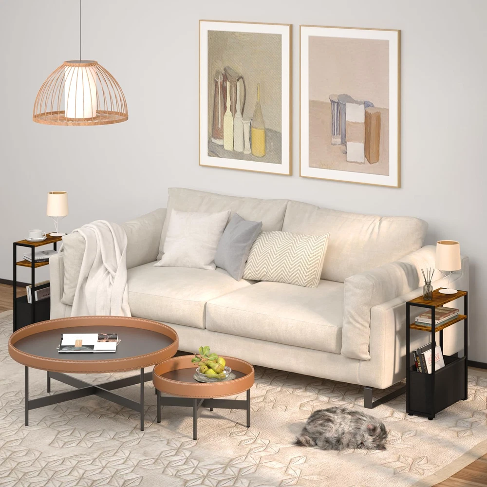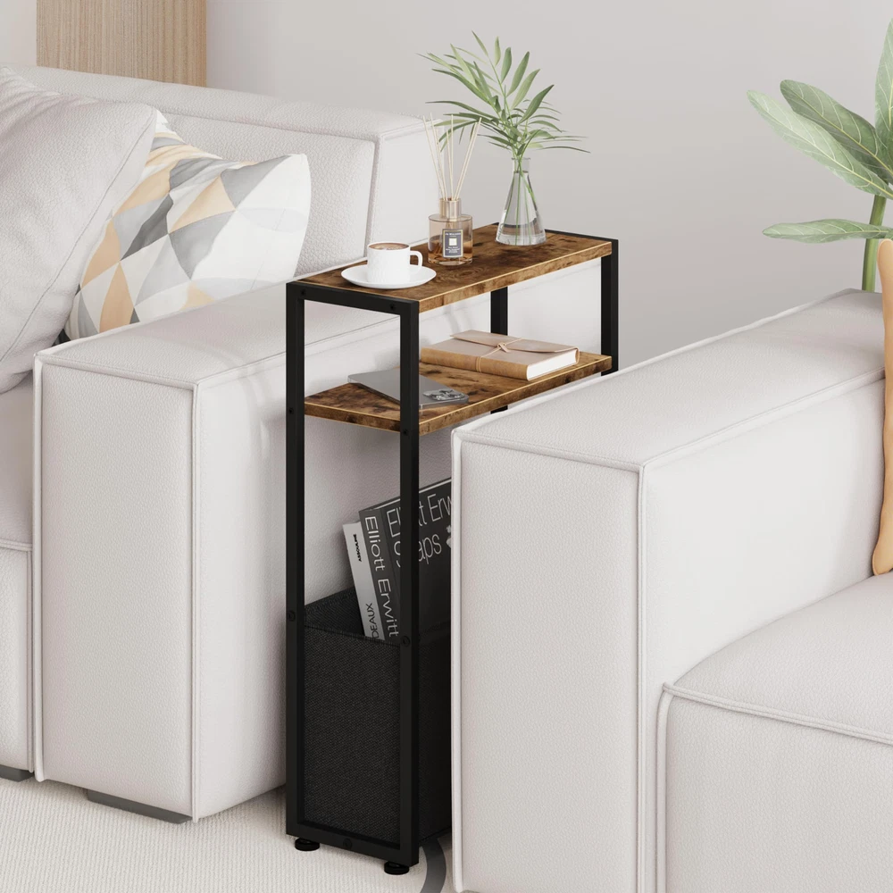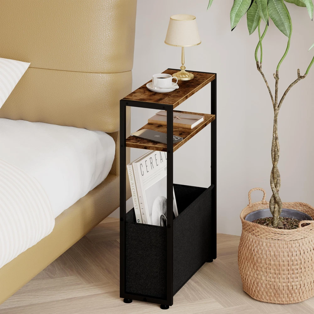 Compact Size & Large Storage: This narrow end table takes up a small footprint. As a thin side table in the living room or as a skinny bedside table in the bedroom, it’s slim but offers plenty of storage space for your items. It measures 7.1"D x 15.7"W x 25.6"H. Quality Basket: We choose oxford fabric to make the basket, this material is easy to clean & waterproof, You can wipe the basket with a wet towel or wash it with water to keep it clean and tidy. Sturdy and Stable: This skinny end table can hold up to 30 pounds, ensuring overall strength and durability. It also has adjustable feet on the bottom so you can level the table on most any uneven floor. Quick and Easy to Assemble: This small side table comes numbered categorization components, detailed assembly instruction manual, all necessary tools you need to Complete assembly were all included in the package. This small side table can be assembled in 10 minutes. Great Service: We offer complete support and a 18-month warranty on this side table. if you have any questions during assembly or use, please contact us and we will try our best to help you.