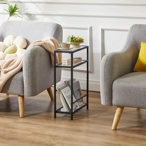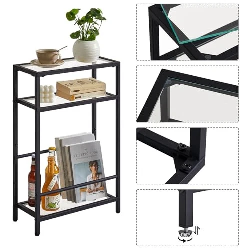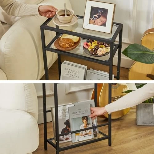 USA Stock Free Shipping 1-5 Days Fast Delivery Trusted seller Narrow Side Table with Storage Shelf, 3 Tier Slim End Table,Modern Sofa Table, Small Nightstand, Telephone Table for Small Spaces,for Living Room, Bedroom, Black UTMZ002B Product Description 【Modern and stylish look】The combination of a clear glass top and black painted metal makes it blend in perfectly with your existing interior home style. This narrow side table can be used as a table side table next to your sofa or as a simple storage unit that looks elegant and adds a nice touch to your home. 【Multi-functional Use】Our side table can be used as a sofa side table, bedside table, magazine rack,snack table, reading table,corner table etc., suitable for your living room, bedroom, balcony, study. It can be neatly placed in a small space, and can be used to store some snacks, coffee, food, beverages, magazines, remote controls, etc., so that the space at home can be fully utilized. 【Sturdy Structure 】The three-tier coffee table is made of glass top and rust-resistant square tube frame, which is sturdy; the steel tube underneath can be adjusted to place whatever you want. The sturdy metal frame with black rust-resistant finish makes this coffee table a nice piece of furniture for your home. 【Space Saving】This side table with storage measures 15.75"(L)*7.09"(W)*24.41"(H), with smart and narrow construction of 7-inch width, this industrial accent table is perfect for small spaces as a sofa end table,nightstand put in the corner and small spaces, the side table not very spacious but still has enough space to add a lamp, drink and magazines or books in the top panel;and it is perfect for small or narrow space. 【Easy to Install and Clean】A simple and beautiful table will not take you too much time to install. Detailed installation instructions and necessary installation tools will be included in the product package, which can help you quickly complete the product installation. The smooth MDF panel and metal mesh are very easy to clean. You only need to wipe with a damp cloth to keep the product clean and tidy. Shipping Returns Payment Shipping Shipping is FREE to all addresses other than APO/PO boxes in the lower 48 states. All our stock ships from US-based warehouses. Shipped via USPS or UPS (depending on location and package weight) Unless stated otherwise, all orders will ship within 24-72 hours of your payment being processed. Check our feedback to see the great reviews of FAST shipping we offer. Returns Seller does not accept returns Payment We currently accept payment via eBay managed payments only. Once payment is cleared, we will dispatch your shipment within 1-3 business days. Please refer to the "Shipping" tab for more information regarding shipping speed to your destination.