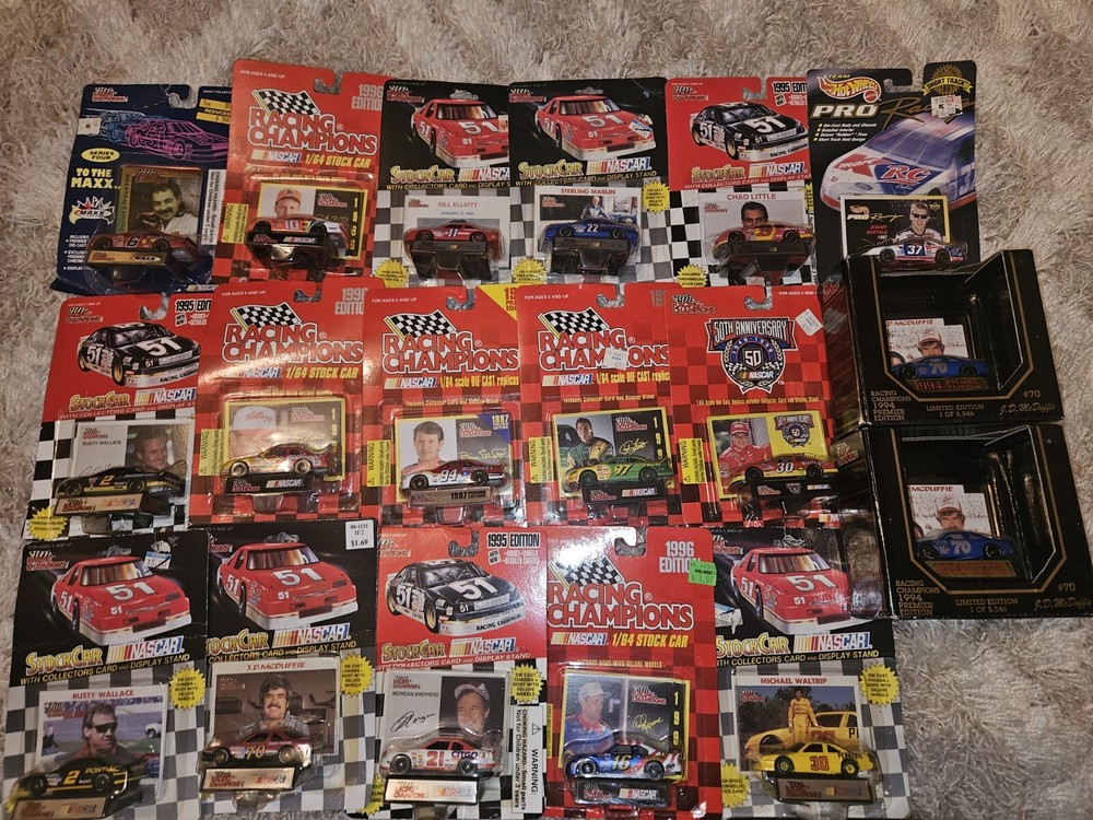 Please love and cherish this collection For the ultimate NASCAR fan, this collection of diecast cars from Lionel is a must-have. Featuring cars from various NASCAR organizations, this bundle is perfect for any collector or enthusiast. Each car is meticulously crafted to resemble the real thing, with attention to detail that will impress even the most discerning buyer. Whether you're looking to add to your existing collection or starting a new one, this NASCAR collectors cars bundle has something for everyone. From sleek sports cars to rugged touring cars, each vehicle is a testament to the thrill of the race. So why wait? Add these stunning cars to your collection today and experience the excitement of NASCAR like never before.