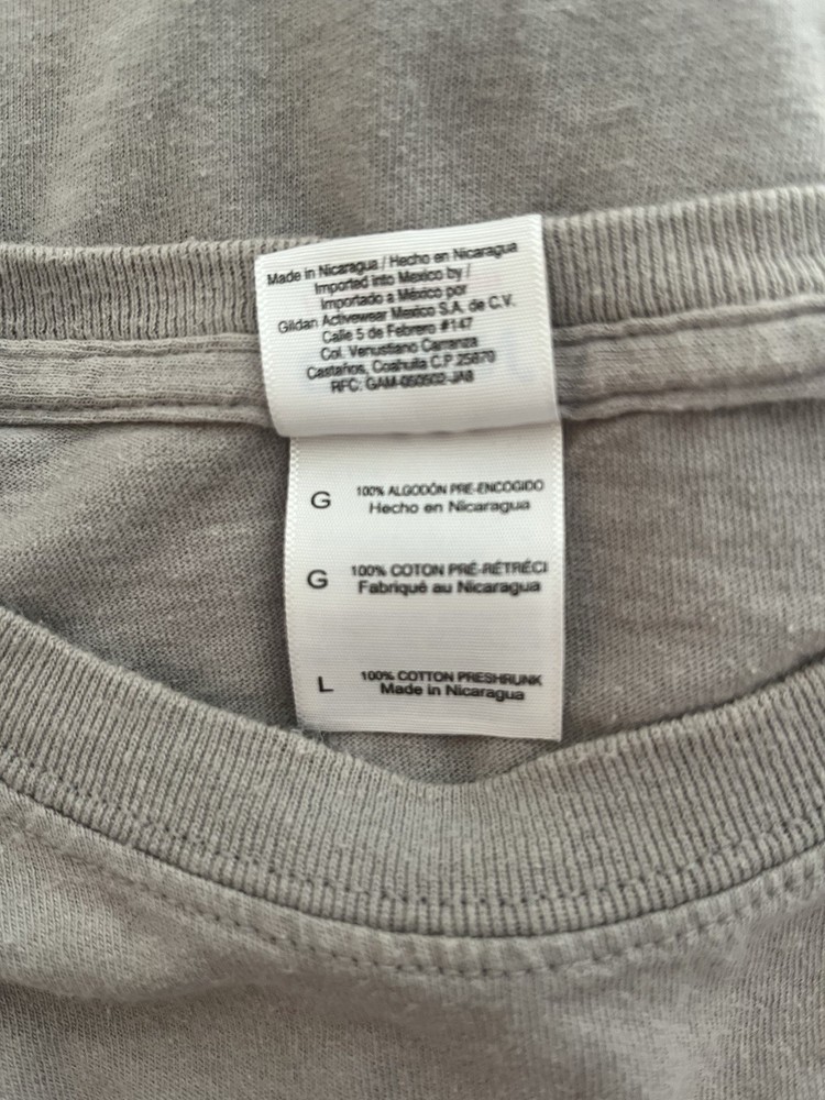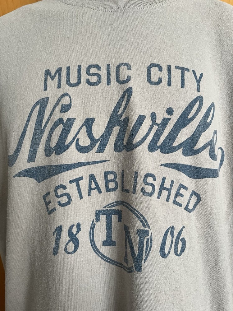 The Nashville Music City T-Shirt in grey size large is a short sleeve shirt featuring the iconic city of Nashville, Tennessee. Made of cotton knit fabric, it is machine washable and features a regular fit with a crew neckline. The shirt is perfect for music enthusiasts with its musical theme, making it a great addition to summer, fall, or spring wear. The Gildan brand ensures a quality product that is also preshrunk for durability.