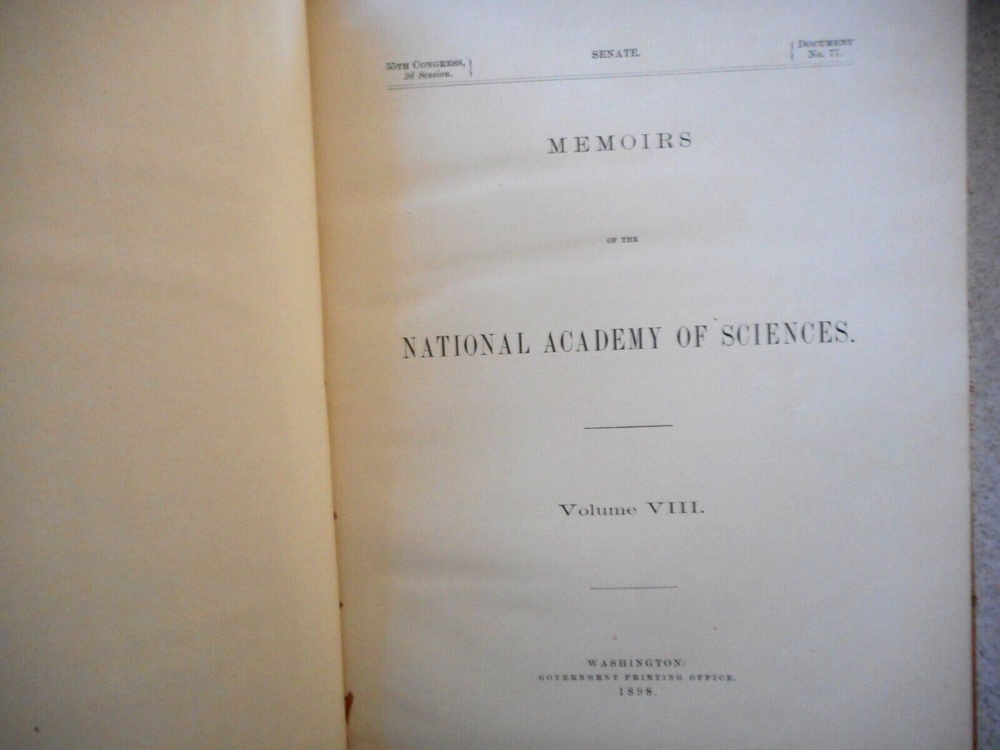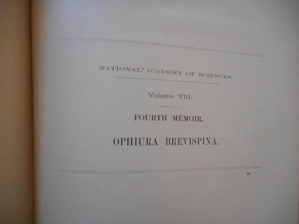 Memoirs of the National Academy of Sciences , Volume VIII , 1898 . Second Memoir , A Contribution to the Study of the Effect of the Venom of Crotalus Adamanteus Upon the Blood of Man and Animals. Mitchell and Stewart. With six plates, color. Third memoir, General Perturbations of Minerva (93) , by Jupiter, Including Terms only of the First Order With Respect to the Mass, Together With a Correction of Elements. W.S. Eichelberger. Fourth Memoir, Ophiura Brevispina, Brooks . 3 plates, color.