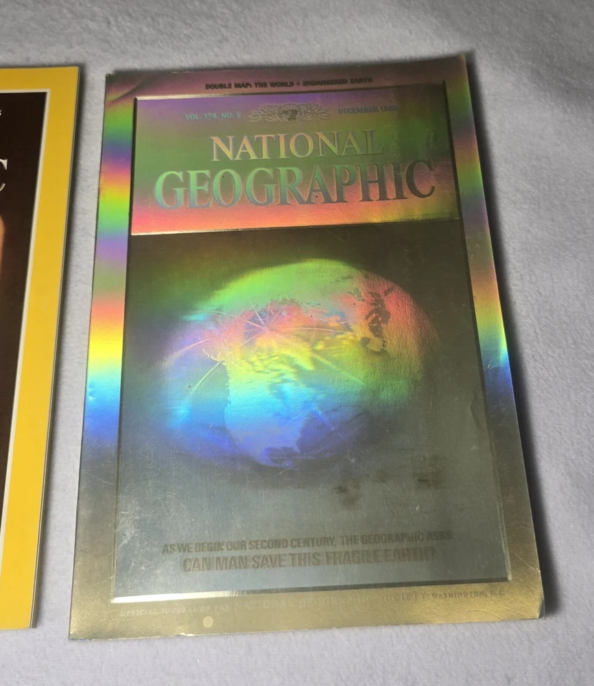 Explore the world with this National Geographic collector's edition set. The set includes two holographic magazines, published in November 1985 Vol 168, No 5, and December 1988 Vol. 174, No. 6, respectively. Immerse yourself in captivating articles and stunning photography that showcases the beauty of nature and the diversity of cultures. With English as the language of choice, this set is perfect for travel and geography enthusiasts. The magazines feature topics such as nature, photography, and exploration, making them a great addition to any collection. Get ready to embark on a journey of discovery and inspiration with this National Geographic set.
