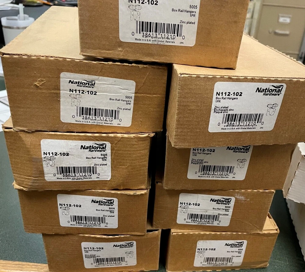 National Hardware N112-102 Box Rail Hangers N112102 2-PIECE BOX RAIL HANGER WITH STRAP USE WITH SQUARE BOX TRACK π΅ Offers submitted late Friday often expire. Please wait Till Sunday π΅ UPS auto calculates freight If you feel the rate is unreasonable high Please contact me before paying. If freight is in fact too high, I will certainly re-bill at the reasonable rate. Descriptions are believed to be correct & Apex Machinery makes no warranties or guarantees otherwise . We operate Monday through Friday between 8am and 5pm PST. We ship through UPS and our rates are calculated through the eBay automatic calculator. When making purchases of more than one item, when possible, we will package items together and reweigh as single package. Upon request, we will ship USPS priority shipping, and will charge shipping fee to the buyer. As well as handling charge of $5.00 - $10.00 depending on order shipping requirements. If you have a UPS account we can ship items using your UPS account number. Buyer will be charged a handling fee of $5.00- $10.00 depending on order shipping requirements. Items too large for UPS ground will be shipped using freight. When shipping items freight we call several companies to get the best rate. Or, the buyer can arrange shipping themselves. If purchased with another item that does not include free shipping, the other shipping charge will apply and the item with free shipping will be added at no additional cost. π¬π Customer satisfaction is our goal. π¬π No warranty of any kind offered, implied or expressed by Apex Machinery. PLEASE CONTACT MANUFACTURE OF PURCHASED EQUIPMENT FOR COMPARISONS The buyer of the item(s) will use this product at his/her own risk. Thank you for shopping with Apex on eBay π¨π§ β’ β β β’.-:Β¦:-β’ Thanks! β’.-:Β¦:-β’ β β β’ π¨π§ New Surplus: merchandise appears new (whether in box or not) but may have blemishes, scratches, etc. Descriptions are believed to be correct & Apex Machinery makes no warranties or guarantees otherwise. Please check out our eBay store for other similar items. Thank you. http://stores.ebay.com/Apex-Machinery-Eugene-Oregon