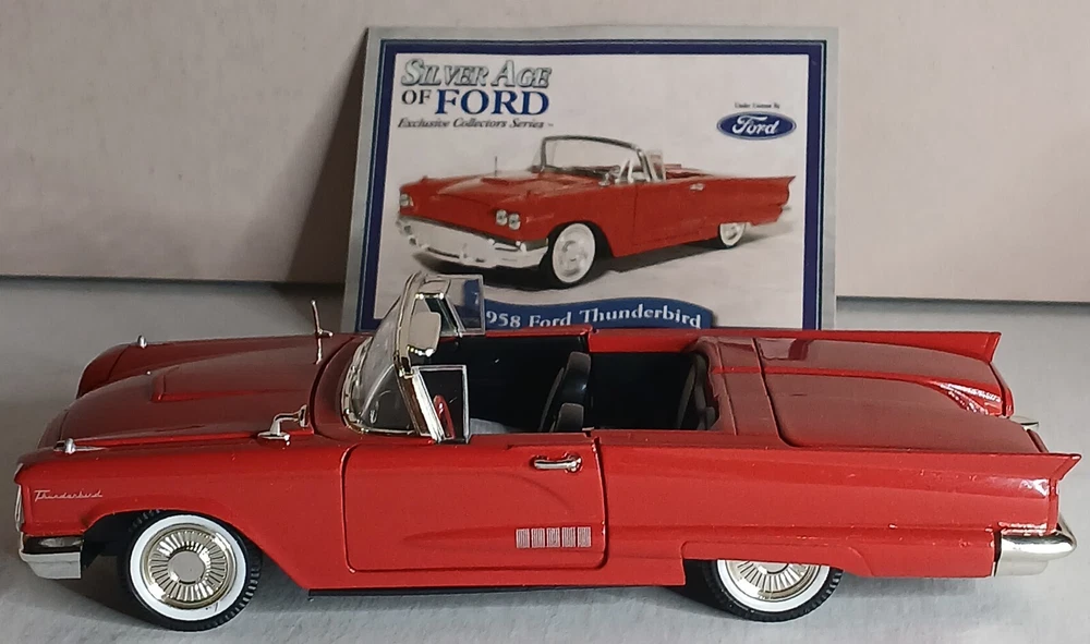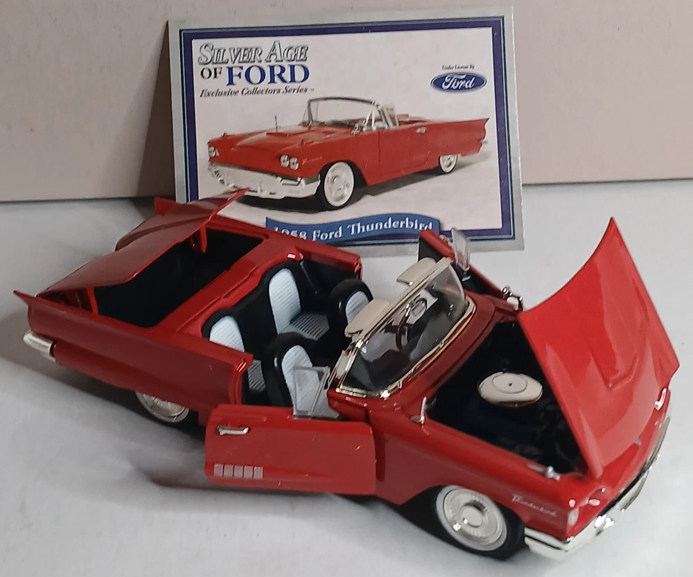 Series:Silver Age of FordVehicle Make:FordScale:1:32gtin13:Does not applyBrand:Signature ModelsVehicle Type:CarFeatures:Limited EditionVehicle Year:1958Theme:Classic CarsModel:Ford ThunderbirdCountry/Region of Manufacture:ChinaMaterial:DiecastYear of Manufacture:1958Color:RedUPC:Does not applyCharacter Family:Cars