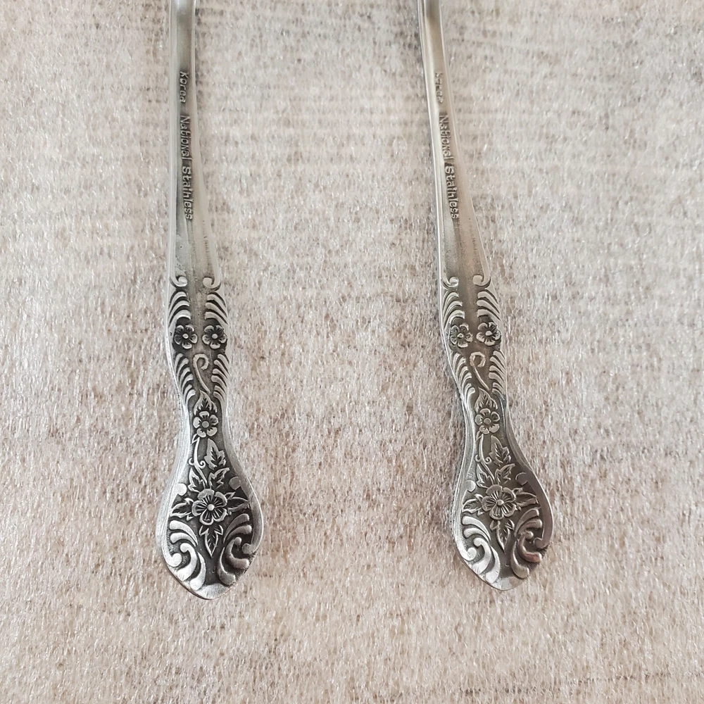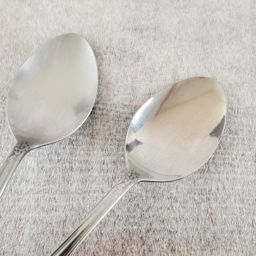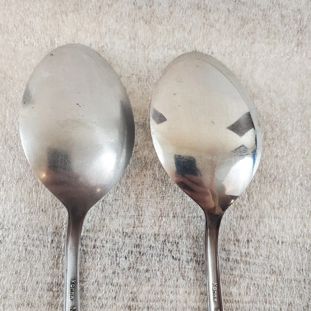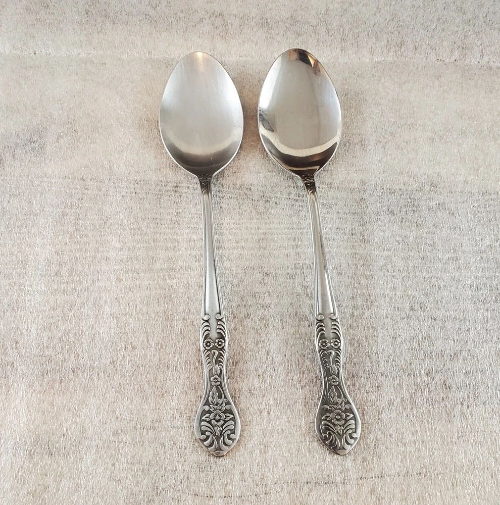 National Stainless NST2 ~ Set of 2 Soup Spoons 7 3/8" ~ Stainless Steel Flatware These pieces are in Used Condition. There are some light marks, scuffs, nicks and surface scratches consistent with age and use. *Please note there is a difference in the glossiness of the bowls. One is more glossy and the other has more of a brushed look.* Please view the photos carefully for condition details. Don't forget to check out the other items in my shop. I'm getting in new fun things all the time. Thank you for looking! Have a great day!