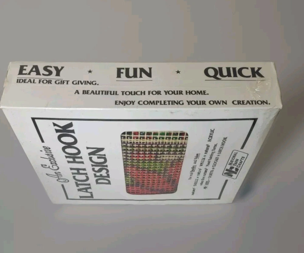Create a beautiful and unique creation with this National Yarn Crafts Latch Hook Kit featuring a stunning Stained Glass Poinsettia design. The sealed new-in-the-box kit includes everything you need to get started, including a 12 x 12 inch canvas, pre-cut yarn, pattern/chart, and of course, the latch hook tool. This kit is perfect for anyone looking to create a statement piece for their home or office. The design is crafted with care in the United States and is sure to impress. Add this made-in-USA Latch Hook Kit to your collection and enjoy the creative process of rug making.
