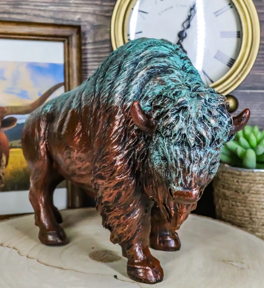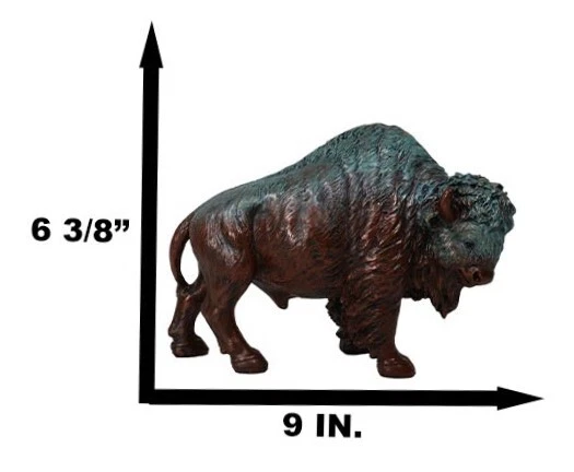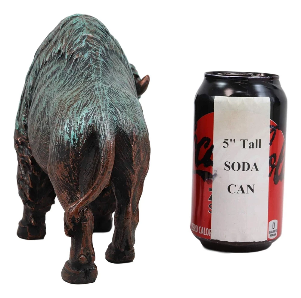 • This Faux Bronze In Green Patina American Bison figurine measures 6.5" tall, 8.5" long and 4.25" deep approximately. It weighs about 1.25 pounds • This Faux Bronze In Green Patina American Bison figurine is made of high quality designer resin, individually hand painted and polished. Color tone may vary from pictures. • This stunning masterpiece american bison is textured and finished in faux bronze with green patina, making the sculpture look aged and vintage. The majestic bison was crucial to the life of the Plains Native Americans. For most tribes in the region, their lives were centered around the bison hunt. The bison is a symbol of provision, abundance and prosperity. Their huge girth and powerful bodies have also turned them into images of strength, stability, and consistency. • This is an Ebros Gift exclusive collection. It comes with our Ebros Gift Satisfaction Guarantee when sold by Ebros Gift. Coke can and props placed next to the statue are not included with the listing. They are meant to provide size perspective of the item. Ebros Native American Wild Bison Buffalo Resin Statue In Green Patina Bronze Finish Video will open in a new window Using the mobile app? Copy this link into your browser: