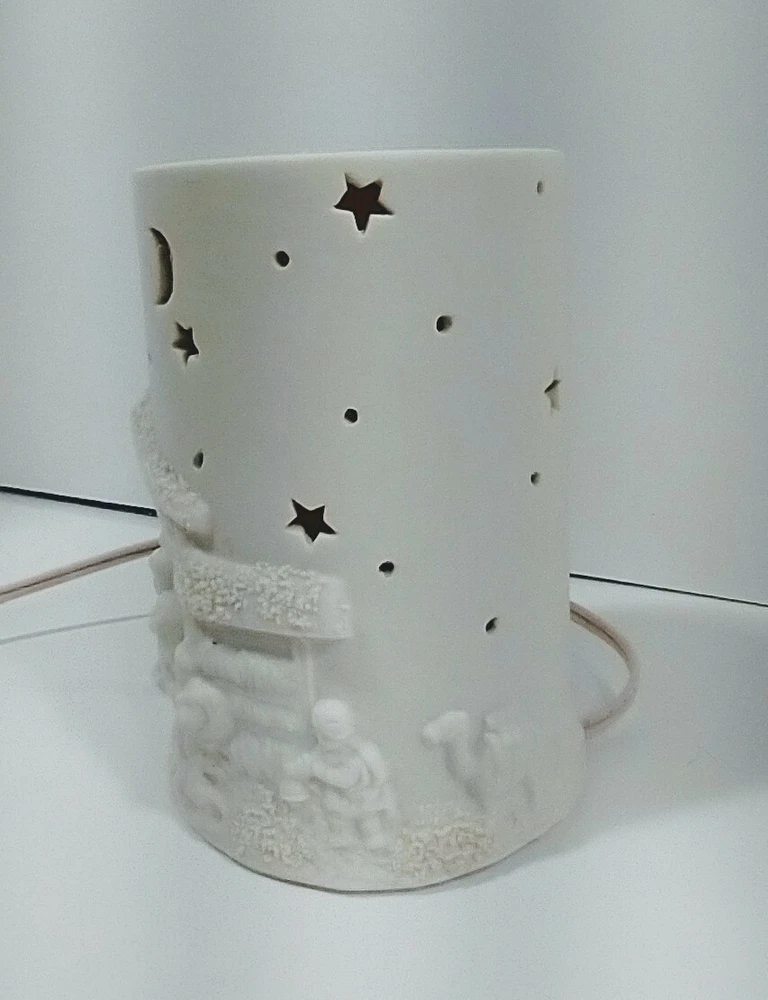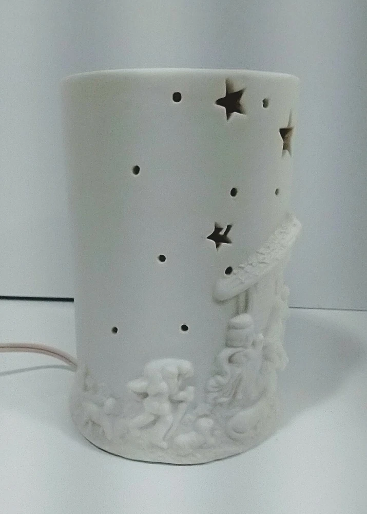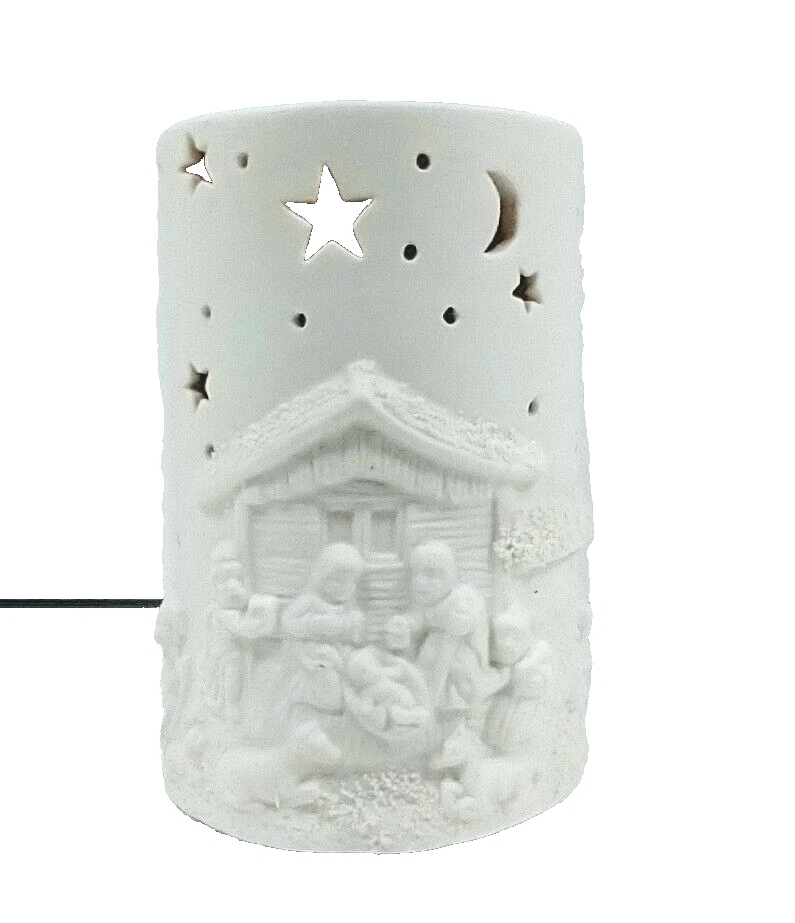 This beautiful pre-owned vintage1 piece ceramic bisque table top light featuring a nativity scene. It is electric corded and makes the perfect Christmas decoration or night light. Standing approximately 5.5" tall x 3.5" wide. The color is ivory. It comes with the original light cord and an amber bulb that produces a soft warm glow when lit. The cord has an on/off switch. It has been tested and works. It is in good pre-owed vintage condition with no cracks, chips, or crazing. Please view all photos carefully (including using zoom) as they are part of the description and show additional details. I pack all items with love and care and ship no later than next business day.