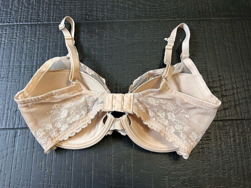 Excellent preowned condition Elevate your daily comfort with the Natori Lace Underwire Bra, a must-have for women who value both support and style. Crafted in a classic beige tone, this T-shirt bra is designed to offer a seamless fit under any outfit. The molded cups are lined and unpadded, ensuring a smooth silhouette without sacrificing shape. The bra features adjustable straps and a convenient back closure for a personalized fit, while the underwired support provides the necessary lift for a flattering look. Made from high-quality nylon, this intimate apparel is a perfect blend of elegance and practicality, suitable for everyday wear or special occasions.