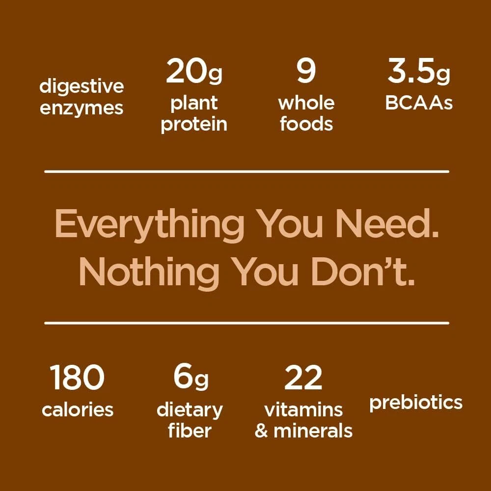 Complete Protein Blend – Contains 5 different non-GMO plant based proteins providing all the essential amino acids in precise proportions, readily usable by the body, for building and repairing tissue and muscle. Whole Food Complex – Includes 9 different healthy colorful fruits and vegetables offering naturally occurring polyphenols, antioxidants and flavonoids to support overall wellness. 22 Vitamins & Minerals – Act as catalysts in thousands of biochemical reactions every day to support normal and healthy cell function. Fiber & Omega Blend – Provides 6 grams of dietary fiber to help keep you regular. Also contains over 200 mg of Omega-3 to support a healthy brain, heart and circulatory system. Prebiotics – Contains 150 mg ActivAloe bioactive polysaccharides that stimulate the growth and maintenance of beneficial intestinal flora. Digestive Enzymes Blend – Assists in digesting foods more completely for greater absorption of nutrients and the good health that goes with them. PLANT BASED PROTEIN POWDER: 20g of non-GMO protein, dietary fiber, no cholesterol, and zero trans-fat vegan protein powder MEAL REPLACEMENT SHAKE: Delicious, all-in-one shake, low calorie, prebiotics, dietary fiber and omega 4 WHOLE FOOD COMPLEX: Nine different fruits and vegetables, polyphenols, antioxidants, and flavonoids 23 VITAMINS AND MINERALS: Everyday nutrition, healthy cell function, post workout BREAKFAST SHAKE OR ON THE GO: Protein berry granola bowl or shake/blend with your favorite liquid During the summer months products may arrive warm but Amazon stores and ships products in accordance with manufacturers' recommendations, when provided.
