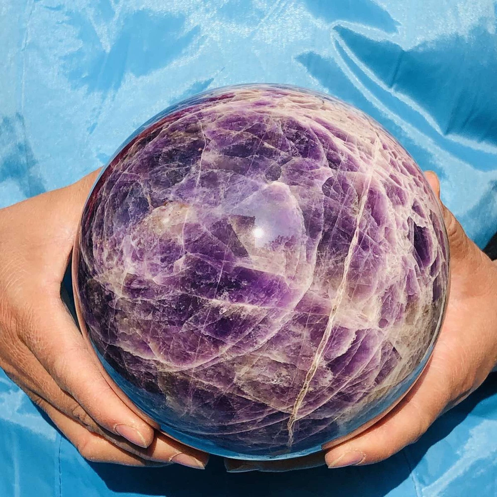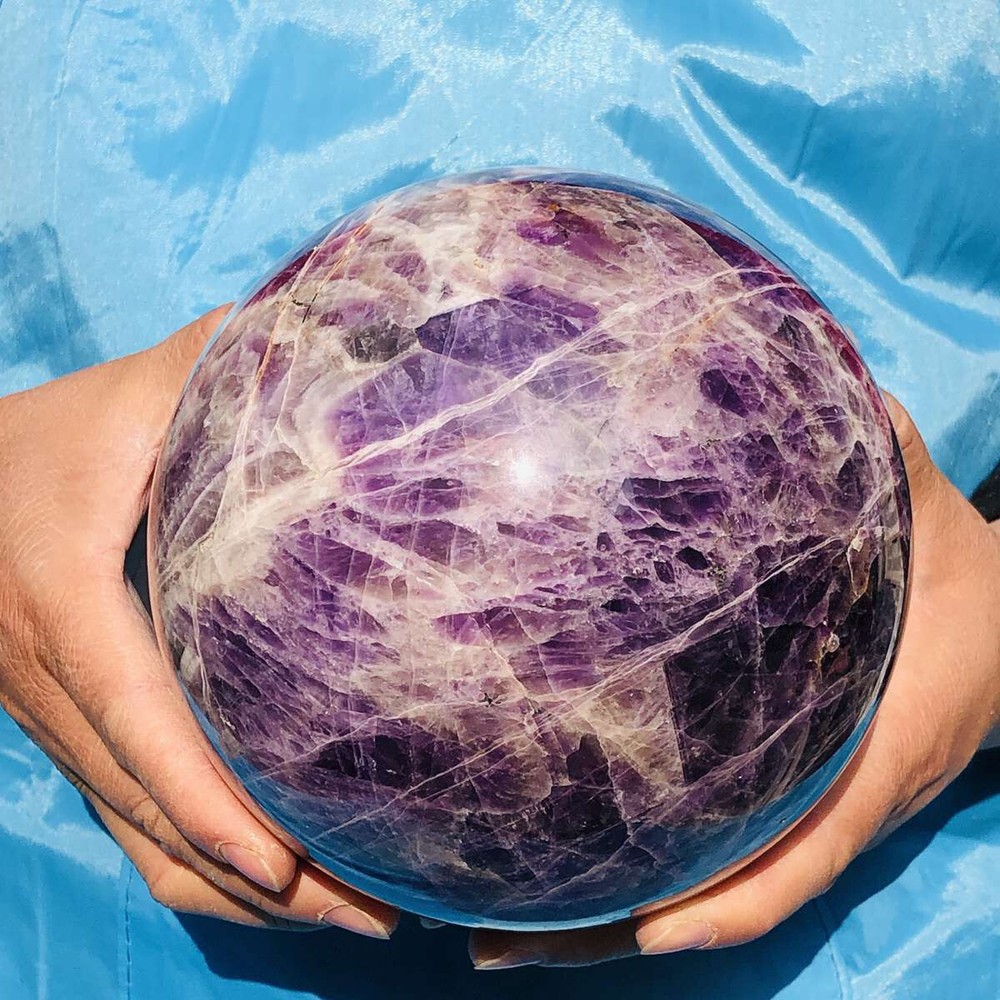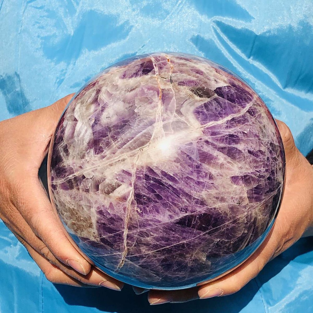 This stunning amethyst sphere is absolutely mesmerizing! The deep purple hues and natural patterns make it a beautiful centerpiece. It feels solid, well-polished, and has a calming energy—perfect for meditation or decor. Shipping was fast, and it arrived safely packaged. Highly recommended for crystal lovers!