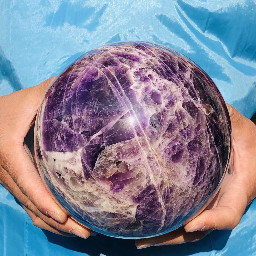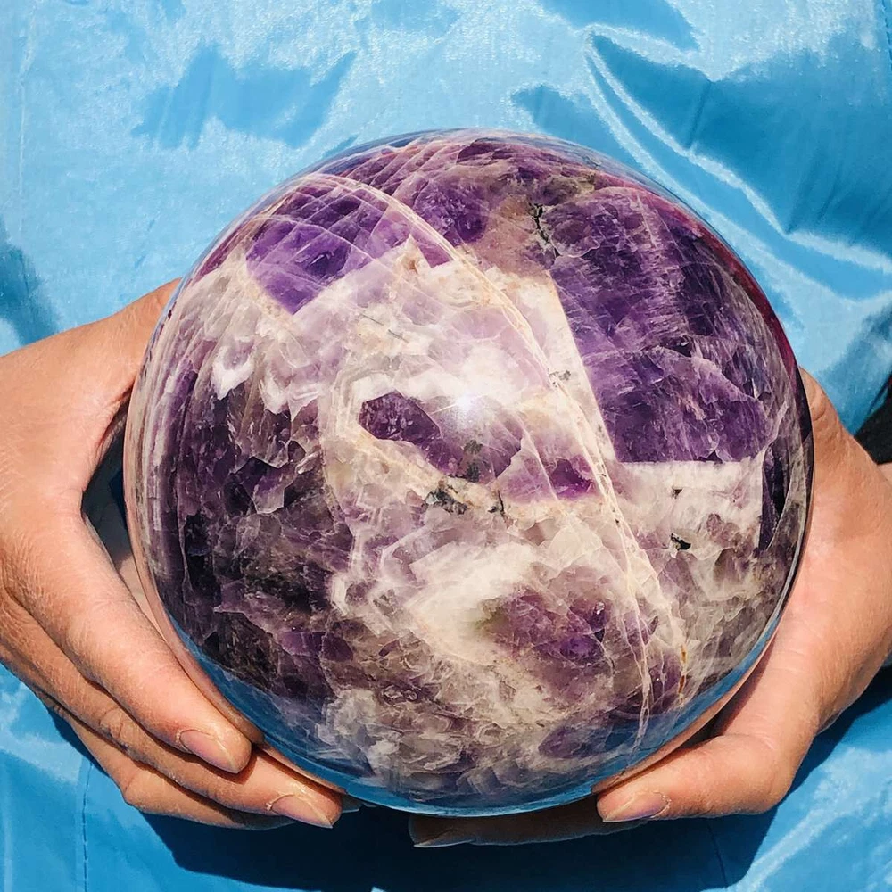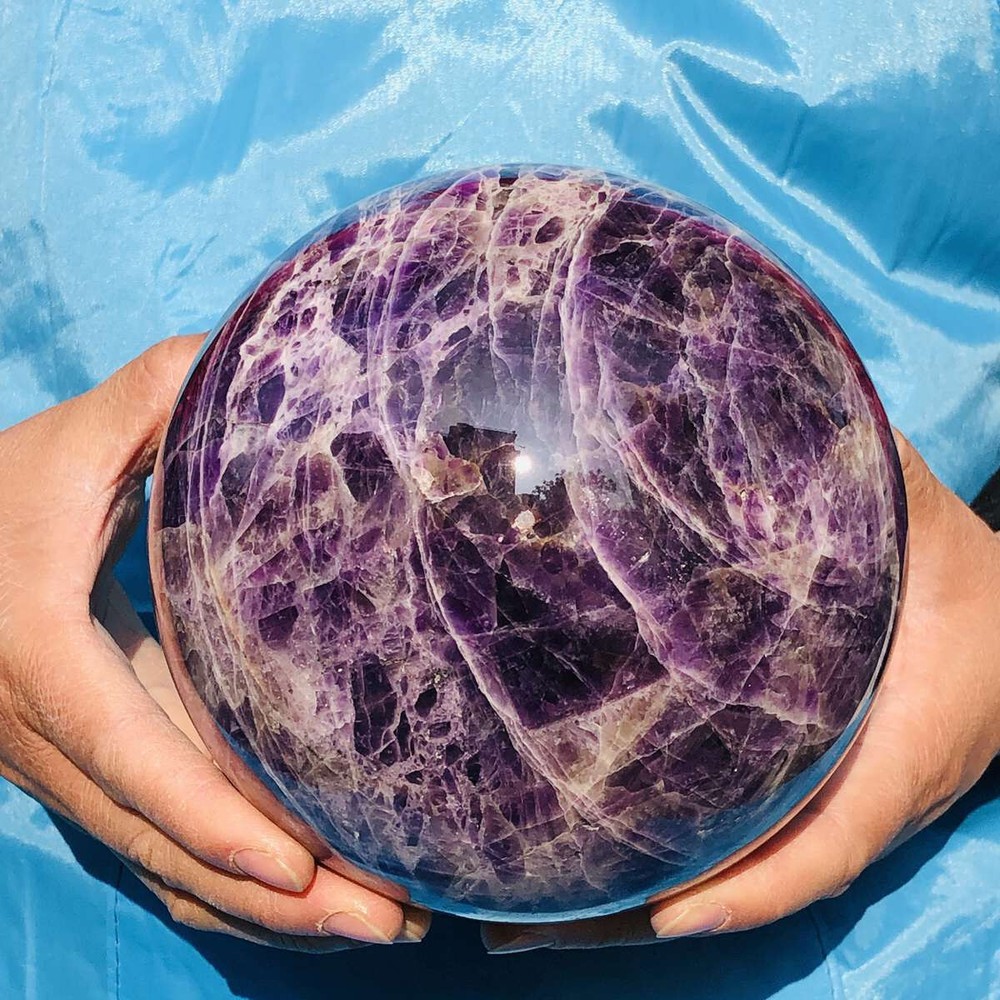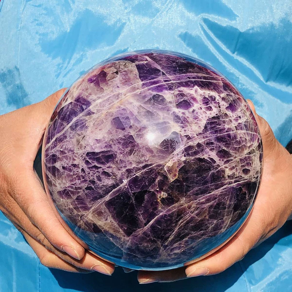 This stunning amethyst sphere is absolutely mesmerizing! The deep purple hues and natural patterns make it a beautiful centerpiece. It feels solid, well-polished, and has a calming energy—perfect for meditation or decor. Shipping was fast, and it arrived safely packaged. Highly recommended for crystal lovers!