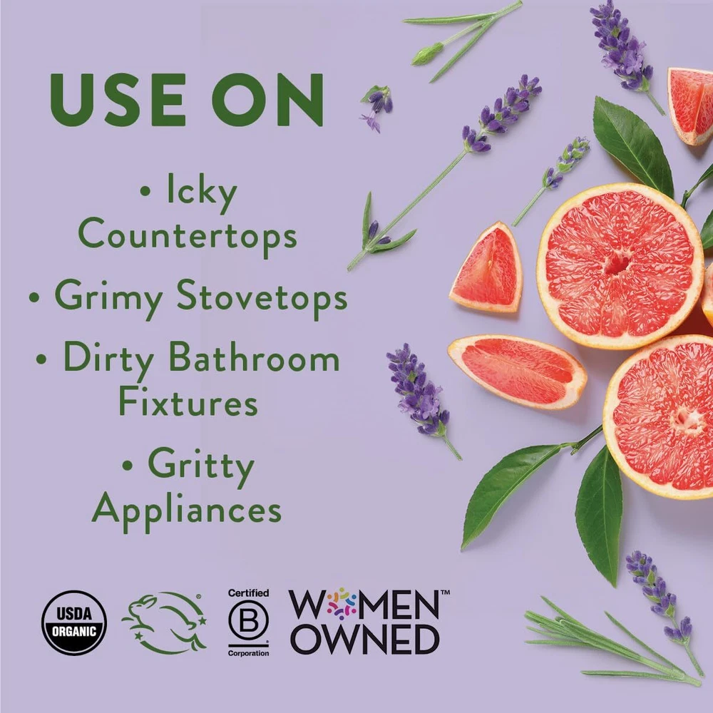 Powerful Ammonia-Free Home Cleaner: Kissed with essential oils, 's multi-purpose cleaner is made with plant-based ingredients for an effective cleaning spray that leaves no streaks yet is gentle on home surfaces and easy on your skin True All-Purpose Cleaner: This versatile surface cleaner is perfect for use on kitchen countertops, appliances, stovetops, bathrooms, hardwood cabinets, granite, stainless steel, laminate floors, quartz, toys, baby car seats, and more Made with Safe Ingredients: Our all-purpose cleaner is ammonia free and is made with kid safe, pet safe, and plant-based ingredients for an essential addition to any household Contains no parabens or other harsh ingredients for your wellness and peace of mind; We harness the power of plants and essential oils for safe, effective cleaning Pretty & Recyclable Packaging: 's surface cleaner bottles are BPA-free and responsibly made with recyclable materials. Keep a bottle of our cleaner in its pretty packaging next to your kitchen sink and use it to keep your home sparkly and fresh