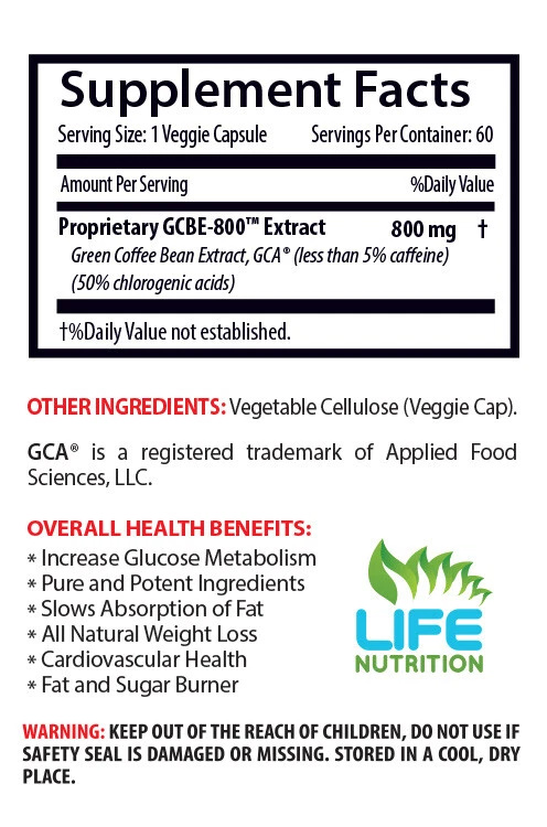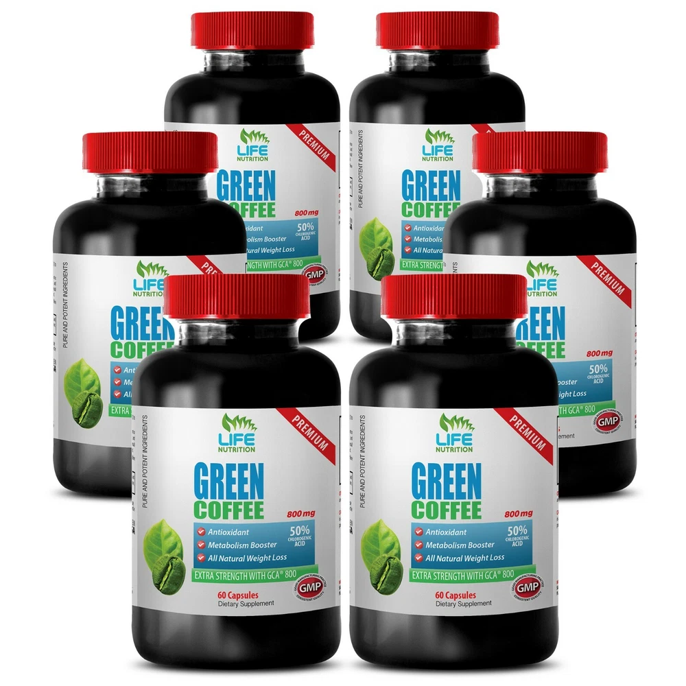 Green Coffee Extract GCA 800mg Pure and Potent Ingredients, Ultimate Weight Loss Supplements Increase Glucose Metabolism, Healthy Weight Management. Clean And Detoxify Your Body, Cardiovascular Health. Powerful Appetite Suppressant, Contain Chlorogenic Acid. Appetite Suppressant, Fat And Sugar Burner,All Natural Weight Loss. Slows Absorption Of Fat, Lower Blood Pressure. Regulate Blood Sugar Levels, Boost Metabolism. Enhanced Cardiovascular Health, Burn Stored Fat From The Body. 6 Bottles, 360 Capsules Made In USA Green Coffee Bean Assist In Weight Loss: A green coffee bean is, quite simply, a raw coffee bean, just like the beans that your regular coffee comes from. Green coffee beans are actually coffee beans that have not been roasted and processed yet. Prior to roasting and processing, the coffee beans sitting inside and harvested from the bright red coffee berries are green in color, hence the name. The roasting process is what turns these green coffee beans into brown. It is also the same process that creates the wonderful taste, aroma, and flavor that coffee lovers so crave and desire first thing in the morning. Chlorogenic acid is the active ingredient in green coffee bean extract thought to assist in weight loss. Pure Green Coffee Bean Extract Improve Metabolism: Pure green coffee bean extract is known to improve metabolism and curb appetite, naturally. Carefully formulated to contain only pure green coffee bean extract. The supplement is among the most popular weight loss aids in today’s market.So when we are talking about the green coffee bean extract, it means that the extract has been derived from unroasted coffee beans. Instead of obtaining the extract from roasted beans, they are soaked completely and then concentrated. In its raw state, coffee beans taste extremely bitter, so to prepare them for consumption, the beans are roasted until they turn golden, then dark brown. This removes most of the bitter taste and gives coffee its distinct aroma. We all want to get something for the money we spend, especially when it comes to weight loss aids that claim to help drop numbers on the scale. Let’s see if green coffee bean extract merits a slot in your budget. Green Coffee Beans Contain Chlorogenic Acid: Green coffee beans contain chlorogenic acid, which proponents say slows the release of glucose into the body after a meal, thereby promoting weight loss. When coffee beans are roasted, most of the chlorogenic acid is lost. The extract, made with chlorogenic acid, is converted into a capsule form before being sold to consumers. Green coffee bean extract is derived from raw coffee beans. These beans are green in color, hence their name.What makes green coffee beans special is chlorogenic acid (CGA). This is what gives the beans their weight loss power.Pure green coffee beans are breaking news health and wellness care and weight loss in the industries, as the source for a prospective innovation in removing the extremely looked for after search to manage and induce the human metabolic rate. Green Coffee Beans Enhanced Cardiovascular Health: The very early green coffee bean extract, continuing study has up until now been boasted as a tool for protected, swift weight loss, together with enhanced cardiovascular health and wellness and fat deposits metabolism.It’s being heralded as a revolutionary new weight-loss product that can melt pounds without the need for diet or exercise.Although it clearly sounds too good to be true, green coffee bean extract is flying off shelves at natural food stores and is in high demand online.Green coffee beans are simply beans that haven’t been roasted. Green Coffee Extract Responsible For Most Fat Burning Effects: Green coffee extract may also contain low levels of caffeine, a well known stimulant and fat burner. It tends to show a linear effect on weight loss, meaning that small amounts will produce a small weight loss, and large amounts will produce a larger weight loss. However, as the caffeine content of green coffee is modest, it is unlikely to be the compound responsible for most of its fat burning effects. Chlorinergic acid, the active compound in green coffee extract, has been shown by some studies to induce weight loss in overweight individuals. When given over a 12 week period the average weight loss was 5.4 kg, compared with 1.7 kg in the placebo group. Green coffee bean extract is rich in natural compounds, such as chlorogenic acids, that are known to have health benefits and to influence glucose and fat metabolism, without having an effect on muscle mass. Green Coffee Extract Contain A Polyphenol Antioxidants & Provide Health Benefits: Green coffee extract has grown in popularity over the last several years, especially after being mentioned on television as a weight loss product. Green coffee beans are coffee beans that have not yet been roasted.Green Coffee is an extract taken from raw un-roasted coffee beans. Raw green coffee beans contain a number of polyphenol antioxidants that provide numerous health benefits.Green Coffee Bean Extract contains a powerful antioxidant called Chlorogenic Acid. Research suggests that the Chlorogenic Acid found in Green Coffee Bean Extract may help people lose weight, lower their blood pressure, and benefit blood sugar. Study demonstrated that there was a trend over 3 lots of 8 weeks for the subjects to lose weight during the coffee extract period. Green Coffee Bean extract has become one of the most sought after diet products on the market since a segment about the effectiveness of it for weight loss. Green Coffee Inhibit The Absorption Of Fat And Eliminate Weight Gain: Green coffee beans are the unroasted seeds of Coffea fruits. If dried, roasted and brewed, they become a regular cup of coffee, which itself has been shown in studies to do the body good due to its high levels of antioxidants. However, drinking a cup of coffee will not provide the same weight-loss benefits that green coffee bean extra
