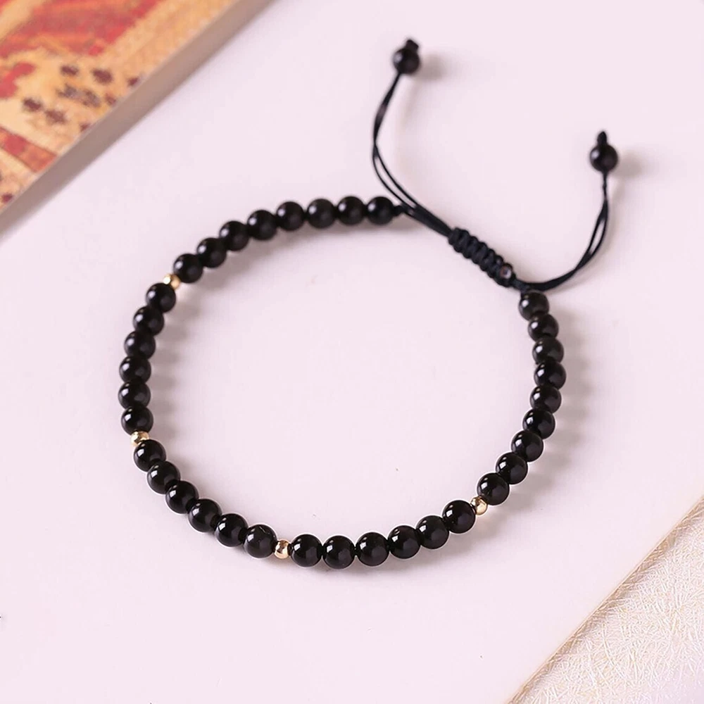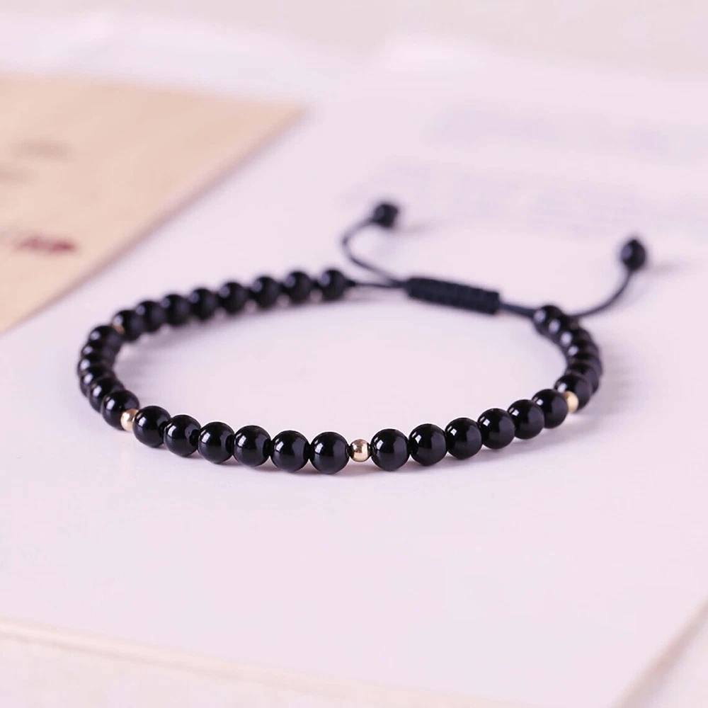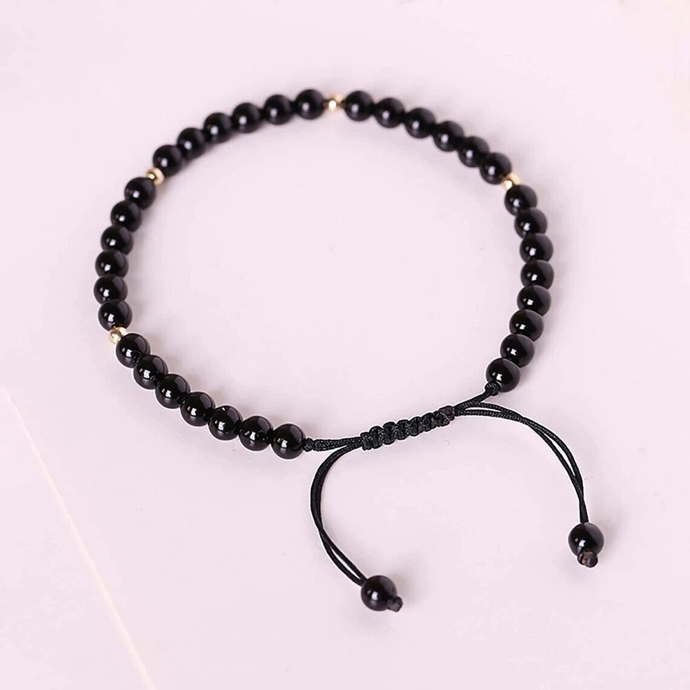 Natural Black Onyx Stone Bracelet Black Crystal Gemstone Stretch Bracelet Healing Spiritual Meditation Bracelet Anxiety Stress Relief Material: Onyx stone Size: fits about 6 ~ 7.5 inch wrist, adjustable
