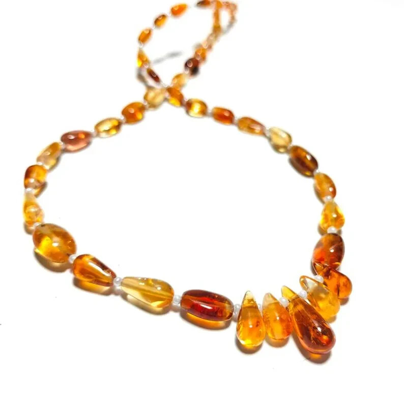 This is a 16" strand of natural Citrine beads in smooth teardrop and oval shapes, ranging in size from 4-15mm. The beads are handcrafted and have a glossy finish, making them ideal for jewelry making. The gemstones are a beautiful blue color, perfect for creating unique and eye-catching jewelry pieces. Quick Details: Material: Natural citrine gemstones Finish: Smooth teardrop and oval shapes Bead Size: 4 to 15 mm Strand Length: 16 inches Quantity: 1 strand