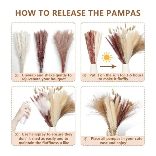 30 Days Return Policy Fast Delivery Trusted seller Natural Dried Pampas Grass Dried Flower Bouquet Table Boho Fluffy Dried Flowers for Home Decor Home Office Wedding Decorations Product Description Gorgeous Home Decor-Get ready for our eye-catching pampas grass to make a bold statement in any room! Whether for your Cozy sunroom, office, or a wedding, our pampas grass fits perfectly with boho, farmhouse, and modern styles, adding a touch of natural beauty. Use it to create stunning centerpieces or wreaths that elevate your space and enhance any setting with its striking decor! Durable And Long-Lasting Choice:pampas grass is a ideal for homes, offices,and wedding decor.It effortlessly blends with boho, farmhouse, and modern styles, creating a beautiful atmosp. With proper care, our air purifying plants can last up to three years, making it a sustainable and eco-friendly option. Keep it dry to enjoy the beauty of this low-maintenance floral arrangement—our Candle bouquet is an easy way to add natural elegance to your home or wedding decor! Easy And Low-Maintenance - Keeping pampas grass looking great is a breeze! Just give it a light shake and leave it in the sun for three to six hours to help fluff it up. A quick spray of hairspray will help preserve its softness too! Bring Natural Into Your Home - Our pampas grass is ethically sourced and all-natural,making it the perfect choice for environmentally conscious-consumers who want to decorate their homes with sustainable products.Pampas grass can be used as a dreamy artwork decor element or paired with other natural materials such as wood and stone to create a cohesive look. Pampas grass is a popular choice for wedding and event decor, adding a romantic ,floral room aesthetic and etal feel to any space. Enjoy Flower Arrangement- Your Living Space, Your Style! Tired of dull decor? Trim our pampas grass to your desired length and pop it into a vase for an instant refresh. It’s a great way to liven up your space and makes a perfect gift for friends! Our pampas grass bouquet adds trendy flair and warmth, bringing personality and pizzazz to any room while keeping it stylish. Spice things up with a Pampas bouquet! Shipping Returns Payment Shipping Shipping is FREE to all addresses other than APO/PO boxes in the lower 48 states. All our stock ships from US-based warehouses. Shipped via USPS or UPS (depending on location and package weight) Unless stated otherwise, all orders will ship within 24-72 hours of your payment being processed. Check our feedback to see the great reviews of FAST shipping we offer. Returns As our valued customer, we will do our best to make sure the product you receive arrives to you on time and as expected. If you are not satisfied with your purchase, please contact us within 30 days of receiving your order to process a return. Payment We currently accept payment via eBay managed payments only. Once payment is cleared, we will dispatch your shipment within 1-3 business days. Please refer to the "Shipping" tab for more information regarding shipping speed to your destination.
