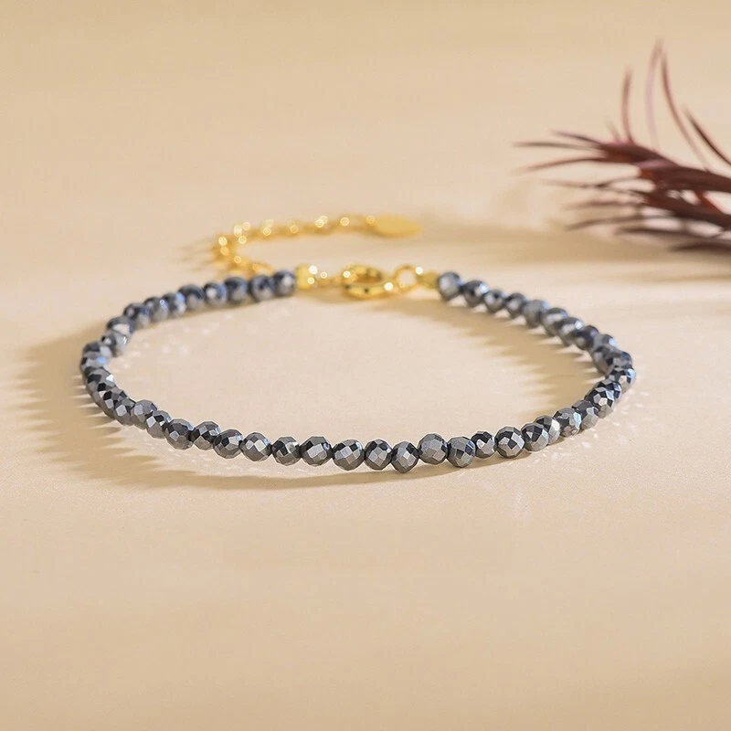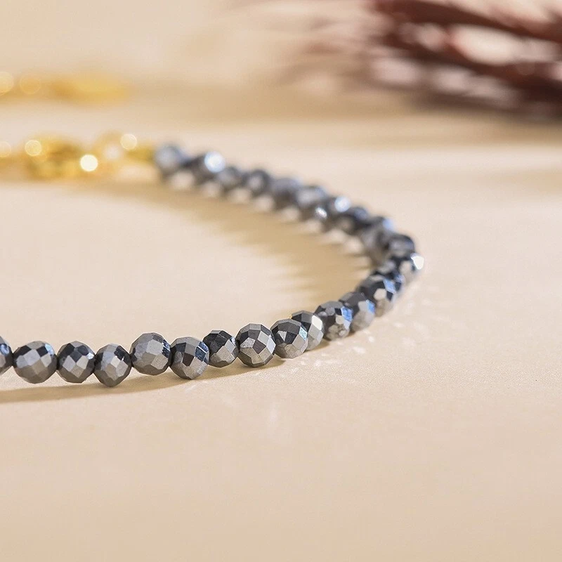 Natural Hematite Stone Bracelet Gray Crystal Gemstone Braided Bracelet Healing Spiritual Meditation Bracelet Anxiety Stress Relief Minimalist Material: Hematite stone Size: fits about 6 ~ 7.5 inch wrist, adjustable