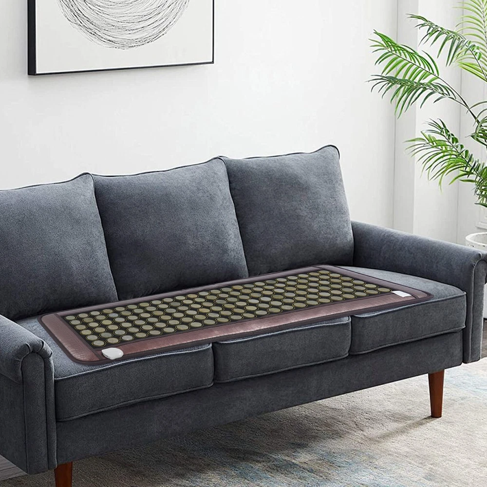Natural Jade Tourmaline Stone Far-infrared Therapy Mat Electric Heating Pad Description Our heating pad utilizes far-infrared technology to promote blood circulation and relieve muscle pain and fatigue. It has a temperature regulation function and can meet the needs of different users. Made with premium materials to ensure durability and comfort, it is an ideal choice for daily health care. Key Features Premium Material: It is made of jade, PU, and polyester material, with a handmade process, which is wear-resistant and has good breathability, ensuring a long service life. Powerful Function : When small stones are heated, they emit long-wave infrared radiation, which can promote blood circulation, eliminate tension, relax the body and mind, and help promote sleep. Far Infrared Heating: This product uses the far-infrared heating method, which has strong penetration and radiation power, significant temperature control effect, and resonance effect. It is easily absorbed by the body and converted into internal energy, more effectively penetrating and eliminating your discomfort than traditional heating pads. Adjustable Design: Its heating temperature range is 68-158 ℉, and you can choose different heating temperatures with the temperature control knob to meet your different usage needs. Suitable Size: The size of this product is 59.06*19.69 inches, it is completely sufficient to cover your back or other parts at once, saving you the trouble of reusing the same area. Thoughtful Design: The temperature regulator of this product can let you know whether it is working properly through the power light and temperature light, and it can also display the temperature, making your use more convenient. Exquisite Gift: With good practicability and a modern appearance, it is an ideal gift for parents, friends, and lovers so that they can also enjoy a more comfortable life. Buy with Confidence: We stand behind all our guests and look forward to assisting you with your purchase. It is our pleasure to answer your confusion and questions. The end of the story between us is not "we sell and you buy". Details Fixed Grid: They can fix small stones and prevent them from shifting, making your use more convenient and efficient. Long Power Cord: A 5.58-ft long power cord can provide you with more usage positions and keep you away from the power source for safer use. Storage Bag: It makes it more convenient for you to store this product when not in use and carry it to other places for convenient use. Application This product is suitable for heating and relaxing the back, abdomen, buttocks, waist, legs, arms, and other body areas. Specification Material: Jade, PU, Polyester Process: Handmade Color: Coffee Style: Modern Massage Area: Whole Body Plug Type: US Standard Voltage: 110V Heating Temperature Range: 20-70℃/68-158℉ Length of Power Cord: 1.7m/5.58ft Product Size: 50*150cm/19.69*59.06in Package Size: 78*52*9cm/30.71*20.47*3.54in Gross Weight: 5kg/11.02 lbs Net Weight: 4.75kg/10.47 lbs Package Included 1* Heating Pad 1* Temperature Regulator 1* Storage Bag 1* English Manual Notes Please read the operating manual and product label completely before use. And pay particular attention to the safety instructions included. Please be aware that it is prohibited to partially cover the mattress with this product for heating. Bedding, blankets, etc. of the same size can be placed to ensure uniform heat dissipation. Please be aware that this product is prohibited from being used in conjunction with latex mattresses and pillows. Please be aware not to fold this product when heating. Please do not use this product for more than one hour when sweating at high temperatures. When going out, please cut off the power of this product and unplug the power plug. Please be informed that this product needs to be preheated for 15 minutes to reach the set temperature. When the temperature falls below the set temperature, the pad will automatically heat up. Please allow the slight color difference caused by the shooting light and the 1-3 cm error due to manual measurement, and make sure you do not mind before ordering. Payment Delivery details Terms of sales About us Contact us Payment We accept ebay payment 。 Fees such as import duties, taxes are not included in the item price or shipping costs. These charges are the buyer's responsibility. Delivery details Shipping: 2-9 working days to: USA Terms of sales We maintain high standards of excellence and strive for hundred percent customer satisfaction. Feedback is very important to us. We hope that you contact us immediately before you give neutral or negative feedback, so that we can address your concerns. It is impossible to address issues if we do not know about them! About us Your satis faction is our ultimate goal. We work hard to earn your trust and future business. Our certified technicians have tested each item before shipping. The unit comes with 1 year limited warranty on all manufacturing defects. a) If you receive a defective item, you may return it or ask for a discount. Please contact us within 14 days after you receive the package. b) What you returned must be intact and in its original packaging as re? u. Customer is responsible for shipping costs of the returned item. c) We will cover the cost of shipping back t with the shipping rate indicated in the registration page. We will send you a new unit or refund the full payment you paid. Thank you. Contact us Business Hour Business Hour: Monday To Friday: 8:30 AM to 5:00 PM (Beijing China time) Due to time zones, our reply to your questions may not be immediately. But within above working time, we will reply your email within 24 hours. If it's non-workdays, please kindly be patient and wait till Monday. Please contact us with ebay message. Please feel free to contact us if you have any questions. Monday To Friday: 8:30 AM to 5:00 PM (Beijing China time) Due to time zones, our reply to your questions may not be immediatel