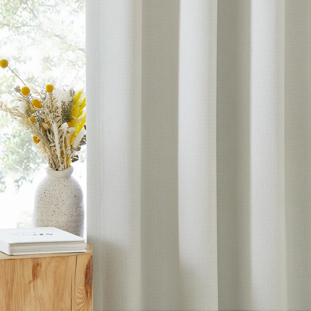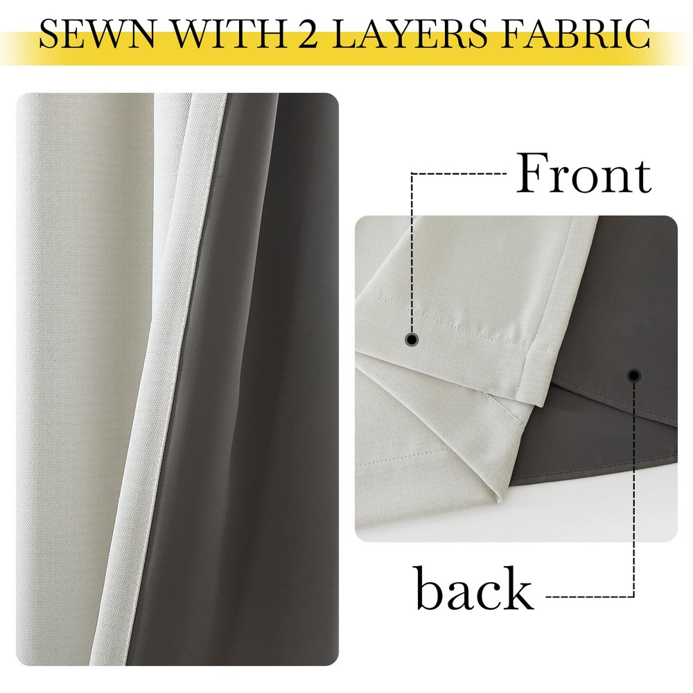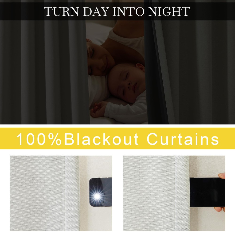 Faux Linen 100% Blackout Bedroom Curtains Ready Made: Package includes 1 panel of faux linen 100% blackout curtains, each measuring 50"W (100"W for pair), The upmarket bronze grommet (1.6-inch inner diameter) will suit most of the standard or decorative curtain rods. 100% Blackout: The faux linen real blackout curtains sewn in grey liner backing to keep out the sunlight and UV ray completely. Also offer you a really dark environment, bringing you a good night's sleep during the day. Nice Fabric: This superb faux linen texture is thick and soft which is much more durable and draped. And feature the curtains with casual and vintage style for creating a more classic and relaxed home circumstance for you. Wide Compatibility: These functional linen blackout curtains are also thick enough to cut noise down. The effect of absorbing sound is 2 times higher than the ordinary 1 layer of curtains. Perfect for most of your home decor. Easy Care: upmarket faux linen texture is -free and has a great vertical sense for easy care. It's OK if you need to tumble dry, quick ironing, steam clean, or machine washable in cold water. Just no bleaching.