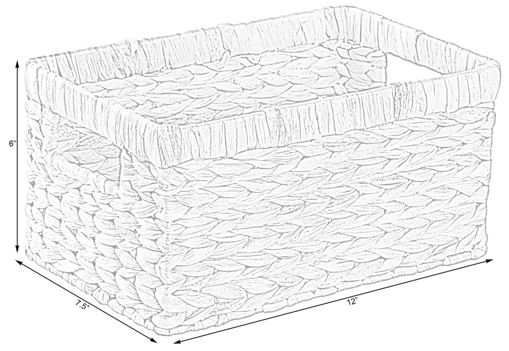 Size: 12" W x 7.5" D x 6" H Composed out of durable water hyacinth material Fits in perfectly with any lodge, cabin, or rustic decor theme Multi use storage options Cutout handles for easy carrying