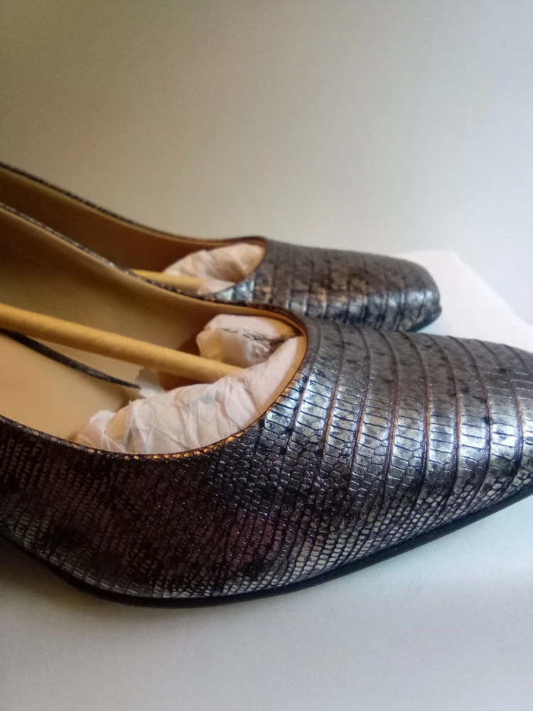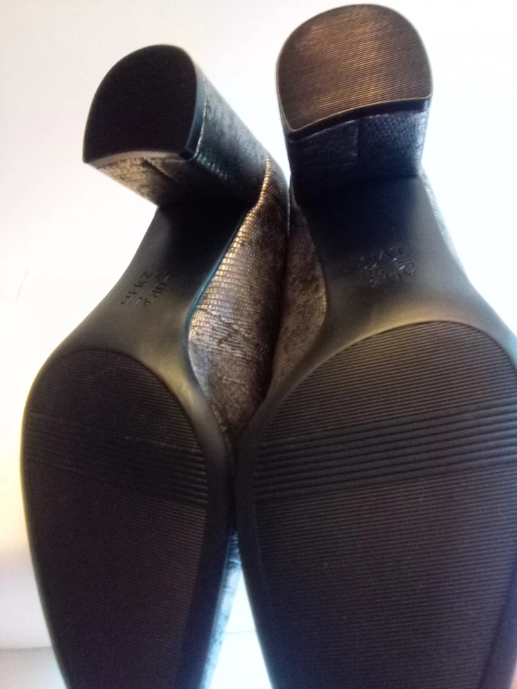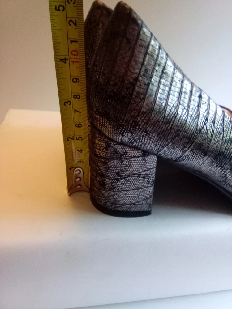 Elevate your style with these chic Naturalizer Warner heels. The sleek pewter silver color adds a touch of elegance to any outfit. With a comfortable block heel and slip on design, these D'Orsay style heels are perfect for a night out or a day at the office. Featuring a square toe shape and croc pattern, these heels are sure to turn heads. Available in US shoe size 7.5 and EU shoe size 37.5, they are made with man-made upper material and crafted in Vietnam. Don't miss out on adding these stunning heels to your collection.