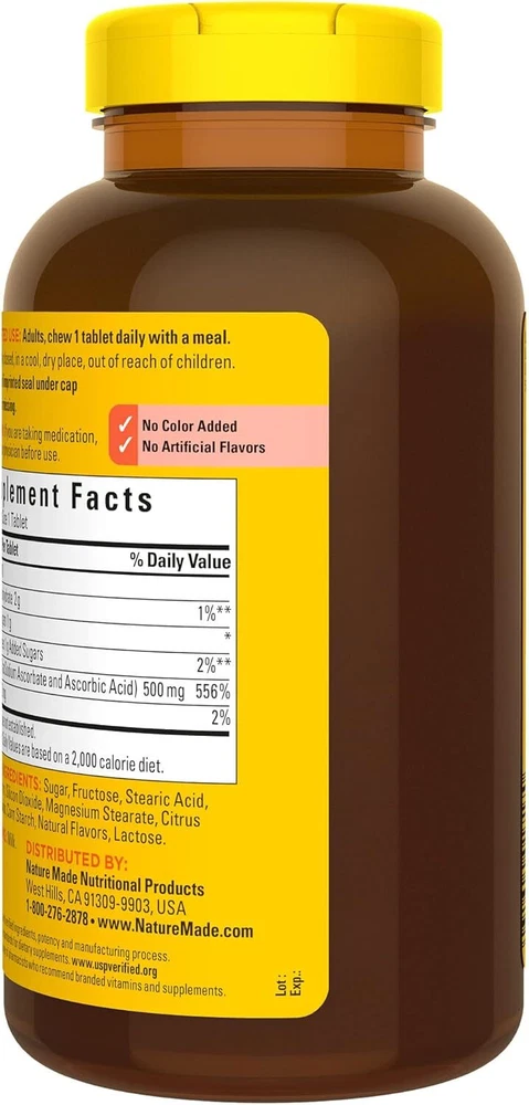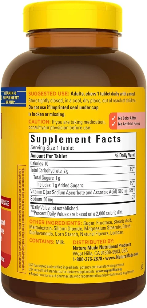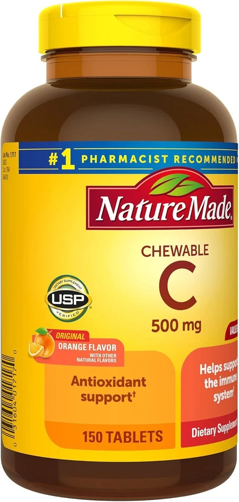 Nature Made Chewable Vitamin C 500 mg, Dietary Supplement for Immune Support, 150 Tablets, 150 Day Supply