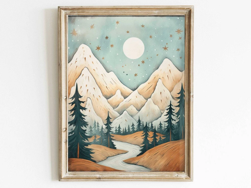 Nature Nursery Decor Mountain Nursery Wall Art Landscape Painting For Kids Rooms Vintage Mountain And Forest Art Art Material: Premium luster photo paper Print type: Inkjet printing One side printed + The finish provides the highest possible resolution and color saturation + Lasts up to 200 years in color and 400 years in black-and-white + Printed on high-quality resin-coated photo base paper medium + Posters can be hung with double-sided tape, tacks, or framed + Hand washing with a gentle cry cloth is recommended for extended durability I will hand select the best choice of paper for your chosen design to ensure top quality results for a beautiful, bright and luxurious print. All prints are sealed in cellophane slips for protection during transportation, and are shipped in a protective cardboard envelope.