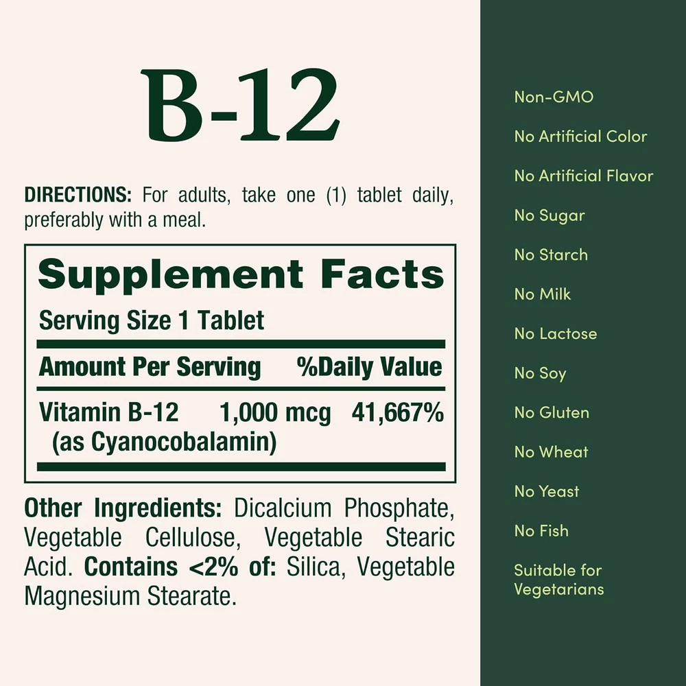 Store New Arrivals Add to Favorite View Feedback Contact Nature'S Bounty Vitamin B12, Supports Energy Metabolism, Tablets, 1000Mcg, 200 Ct Nature'S Bounty Vitamin B12, Supports Energy Metabolism, Tablets, 1000Mcg, 200 Ct SUPPORTS CELLULAR ENERGY HEALTH (1): Nature’s Bounty B-12 vitamins aid in the conversion of food into cellular energy (1) CARDIOVASCULAR SUPPORT (1): Vitamin B-12 is a commonly used vitamin taken to support the health of the cardiovascular and circulatory systems (1) HELPS MAINTAIN HEALTHY NERVES (1): B-12 plays an important role in maintaining healthy nerve cells (1) EASY TO SWALLOW COATED TABLETS: Nature’s Bounty B-12 tablets are coated, making them easier to swallow FROM THE TRUSTED WELLNESS EXPERTS: Nature’s Bounty Vitamin B-12 tablets are a product of nearly 50 years of dedication to quality, consistency, and scientific research to make vitamins and nutritional supplements of unrivaled excellence Nature’s Bounty Vitamin B-12 is a crucial dietary supplement designed to support your overall health and vitality. Each tablet delivers 1000 mcg of Vitamin B-12, which is essential for the conversion of food into cellular energy, helping you maintain an active lifestyle. This vitamin is particularly beneficial for those looking to enhance their energy metabolism, as well as individuals seeking to support their nervous and cardiovascular systems. The easy-to-swallow coated tablets ensure that you can incorporate this supplement seamlessly into your daily routine, whether at home or on the go. In addition to its energy-boosting properties, Nature’s Bounty Vitamin B-12 is suitable for vegetarians and is free from sugar, lactose, gluten, and artificial flavors, making it a versatile choice for various dietary preferences. The formulation is backed by nearly 50 years of expertise in the wellness industry, ensuring that you receive a product of the highest quality and efficacy. With Nature’s Bounty, you can trust that you are investing in your health with a supplement that is rooted in scientific research and dedication to excellence. Product Dimensions: 1.98 inches x 1.98 inches x 4.17 inches. Weight: 4.48 oz About Us Welcome to Opal Emporium —Where Every Discovery Feels Magical! We’re passionate about connecting you with the products you need, exactly when you need them. From unique, handcrafted treasures to everyday essentials, our carefully curated collection offers something for everyone. We pride ourselves on providing exceptional quality, personalized service, and a seamless shopping experience. As a community-focused business, we value building genuine connections with our customers. Thank you for choosing us—we’re thrilled to be part of your story. Explore our shop and discover something special today! Shipping policy At Opal Emporium , we believe that every order should arrive swiftly and safely—because your excitement matters to us! We work hard to get your package to you as quickly as possible, but sometimes delays happen due to factors beyond our control, such as weather or carrier issues. Most of the time, your order will arrive ahead of schedule because we treat every shipment with high priority. If any unexpected delays occur, simply reach out to us—we’re always here to help and will make it right. For customers outside the U.S. we use the eBay global shipping program. The item is shipped to KY and then sent to the rest of the world. International customers are responsible for all duties and taxes. Continue to check out in order to calculate costs for shipping the item to your country. Messages regarding eBay's Global Shipping Program MUST be directed at eBay EXCLUSIVELY. Thank you for trusting us with your order—we can’t wait for you to enjoy your special find! Returns Your happiness is at the heart of everything we do! If you’re not completely in love with your purchase, we offer a 30-day return policy for a full refund or exchange. We want you to shop with confidence, knowing that we stand behind every product we offer. Please note that returns are only available for orders within the U.S. If you have any questions or need assistance with a return, our team is here to ensure the process is as smooth as possible. At Opal Emporium , we’re dedicated to making every shopping experience magical—thank you for being a valued part of our community!