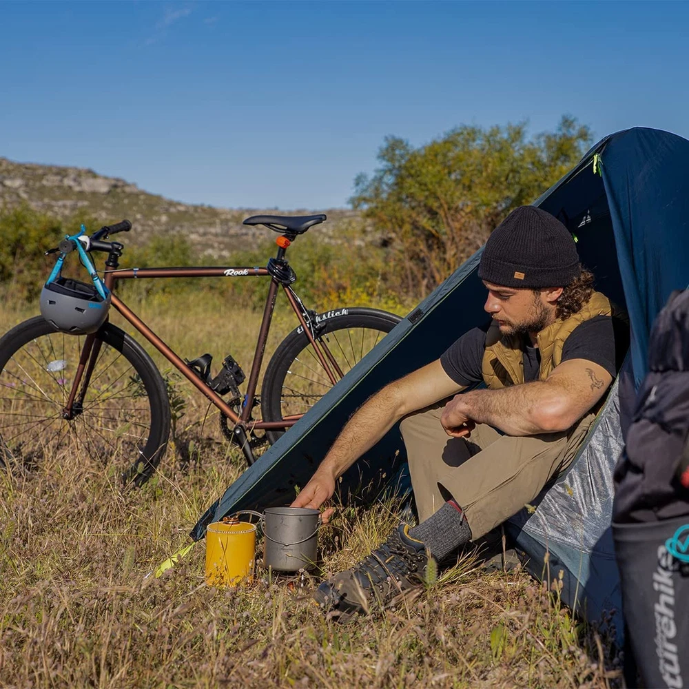 Naturehike Bikepacking 1 Person Tent, Waterproof Easy Set up Free Standing Single Person Tent, Lightweight Backpacking Tent for 1 Person, One Person Tent with Footprint Included Product Details Color: 20D Navy Blue Brand: Naturehike MPN: J0-KJYN-7P44 EAN: 6927595705889 UPC: Does not apply Brand: Naturehike Product Dimensions: 80.7"L x 61"W x 43.3"H Item Weight: 3.7 Pounds Floor Width: 12 Inches Recommended Uses For Product: Backpacking, Trekking, Camping & Hiking, Mountaineering, Fishing Shape: dome tent Occupancy: 1 Person Seasons: 3 Season Included Components: Carry Bag, Peg, Rope Water Resistance Technology: 4000 Mm Brand: Naturehike Product Dimensions: 80.7"L x 61"W x 43.3"H Item Weight: 3.7 Pounds Floor Width: 12 Inches Recommended Uses For Product: Backpacking, Trekking, Camping & Hiking, Mountaineering, Fishing Shape: dome tent Occupancy: 1 Person Seasons: 3 Season Included Components: Carry Bag, Peg, Rope Water Resistance Technology: 4000 Mm Special Feature: Portable, Ultralight, Waterproof, Lightweight, UVProtection, Rainfly Occupant Capacity: 1 Design: Camping Tent Material: Nylon Color: 20D Navy Blue Sport: Camping & Hiking Age Range (Description): Adult Installation Type: Easy Setup, Instant, Free Standing Product Care Instructions: Hand Wash Assembly Time: 2 minutes Pole Material Type: Aluminum Size: 1 person Closure Type: Zipper Number of Doors: 1 Fabric Type: Rainfly: 20D silicone coated nylon(Waterproof PU 4000mm), Inner Tent: 210T rip-stop polyester+B3 breathable mesh(Waterproof PU 3000mm), Floor: 150D rip-stop oxford(Waterproof PU 3000mm), Poles: 7001 Aluminum alloy Floor Length: 80.7 Inches Maximum Height: 43.3 Inches Base Material: Polyester Number Of Poles: 2 Style: Three-season Water Resistance Level: Waterproof Assembly Required: Yes Stake Material: Aluminum Number of Vestibules: 1 Number of Guylines: 1 Is Waterproof: True Model Name: Naturehike Cycling 1 Person Tent Manufacturer: Naturehike Item Package Dimensions L x W x H: 15.79 x 9.49 x 5.39 inches Package Weight: 1.74 Kilograms Item Dimensions LxWxH: 80.7 x 61 x 43.3 inches Brand Name: Naturehike Suggested Users: unisex-adult Part Number: J0-KJYN-7P44 Date First Available: January 14, 2022 Rainfly: 20D silicone coated nylon(Waterproof PU 4000mm) Waterproof & Windproof:Made of PU4000mm waterproof 20D nylon with silicone coating, and all corners and seams are taped, keeps you dry , with no leaks or drops of water inside. The 7001 aluminum alloy is tough and durable, hold up firmly in heavy wind and rainstorm. Enjoy a good nights sleep regardless of the weather, go through hail and tons of rain and wind with the tent. Roomy 1 person Tent for 3 Seasons:Tent Dimensions : 80.7 (L) x (12+37.4+12)(W) x 43.3 (H) inches. This one person tent has height of 43.3inch, plenty room for a single person to sleep and enough headroom to sit down inside comfortably. Easy setup Freestanding Tent: Super easy to assemble, free-standing design with 2-Y aluminum alloy poles, it takes less than 5 minutes to set up the tent for anyone with no experience. Good Ventilation Double Layer Tent:This tent is designed with two layers, which helps to create as much space and airflow between the fly and the inner tent. High desity B3 mesh inner tent and the window provide good ventilation and much air flow inside the tent. D-shaped mesh door with smooth two-way zippers provide much better ventilation and easy access to the tent. Ultralight Single Person Tent:Made of lightweight 20D nylon material, this ultralight single person tent only weighs 3.63lbs. Small packed size:15.7 x 5.9 x 5.9 inch,save room for other camping gears, this solo tent is perfect for lightweight backpacking, bikepacking, motorcycle camping, hiking, cycling,fishing,etc. FOOTPRINT INCLUDED:This backpacking tent comes with the footprint for the tent, you dont need to purchase separately. Package also included: Tent x1, Rainfly x1, Aluminum Pole x1, Reinforced Pegs x8, Reflective Wind Ropes x2, Carry Bag x1.