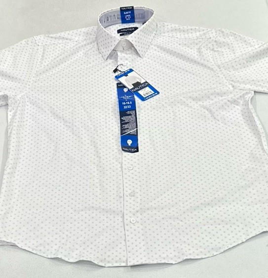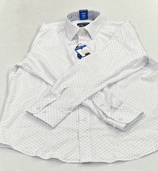 Nautica Men's Performance Slim Fit Dress Shirt Size: Large (16-16.5, 32/33) Color : White Contents: 95% Polyester / 5% Spandex