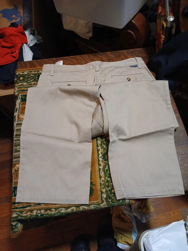 Elevate your casual style with these Nautica Clipper Relaxed Fit pants. The khaki color and solid pattern make them versatile for any occasion, whether it's a casual walk or a day out with friends. The pants are made of 100% cotton twill fabric, which provides comfort and durability. Featuring a button closure and slash pockets, these pants are both stylish and functional. The flat front design and straight leg style provide a classic look, while the regular fit ensures a comfortable wear. Perfect for summer, fall, or spring, these pants are a great addition to any wardrobe.