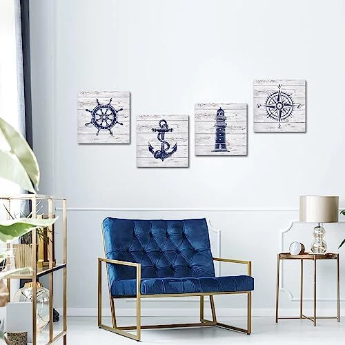 Menu 1. We require immediate payment. 2. We currently accept payment via eBay managed payments only. 3. Once payment is cleared, we will dispatch your shipment within 1-3 business days. Please refer to the "Shipping" tab for more information regarding shipping speed to your destination. Nautical Canvas Wall Art Nautical Bathroom Decor Navy and White Lighthouse Decor Boat Anchor Compass Painting Pictures Prints Product description Wall art size:12x12inchx4pcs(30cmx30cm, set of 4 ) Giclee artwork, print on polyester canvas. Eco-Ink print makes it safe for kids and pets Gallery wrapped, stretched with wooden frame, hook mounted on wooden bar, Easy & Ready to hang Perfect canvas decor for living room, bedroom, guest room, bathroom, dinning room, nursery, office, hallway, hotels, inn, Bar, etc Warm Tips: Due to different brand of monitors, actual wall art colors maybe slightly different from the Product Image,If any questions, we will be the first time for you PLEASE MESSAGE US IF YOU HAVE ANY OTHER QUESTIONS, AND MANY THANKS FOR READING ALL OF THIS. Copyright ©#. All Rights Reserved.