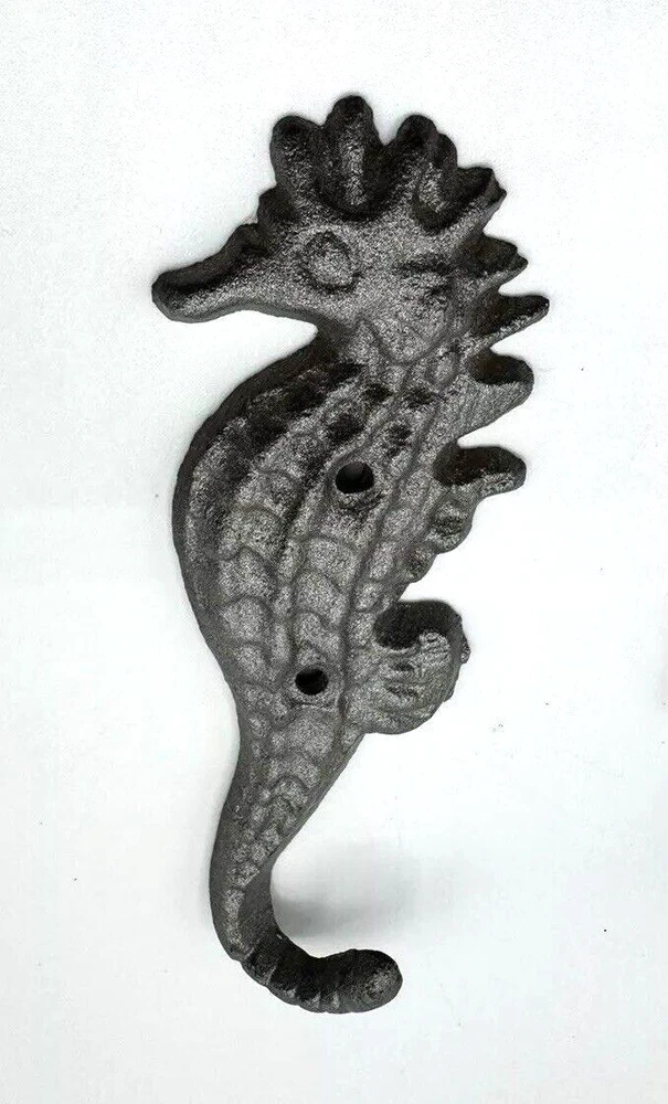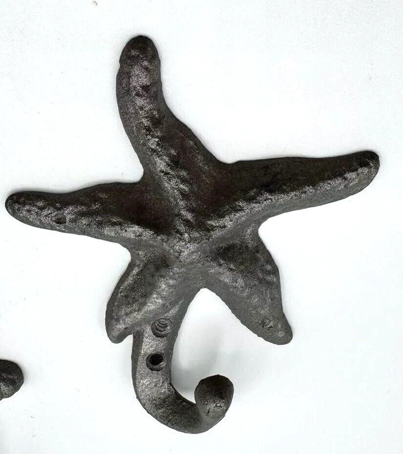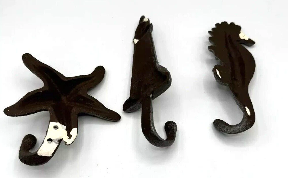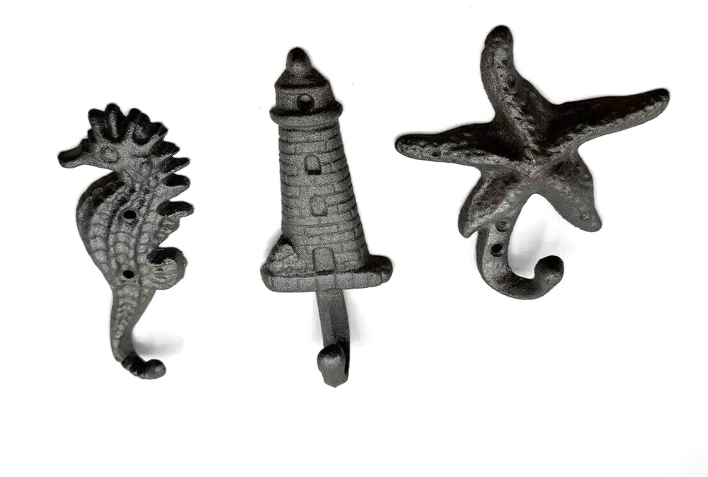Nautical Ocean Starfish Lighthouse Seahorse Metal Clothing Decor Hooks some white spackling on back see pics seahorse is 5" lighthouse is 5.75" starfish 4.5"