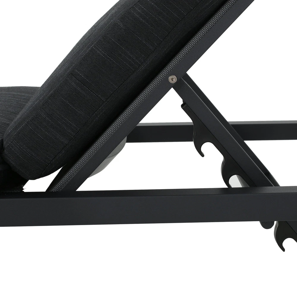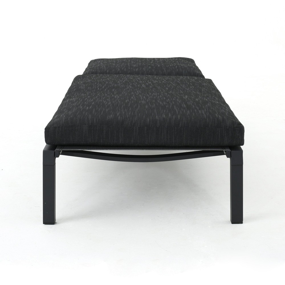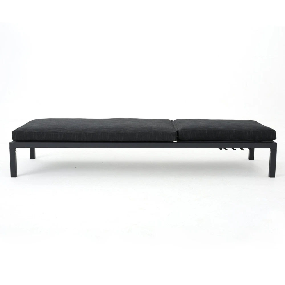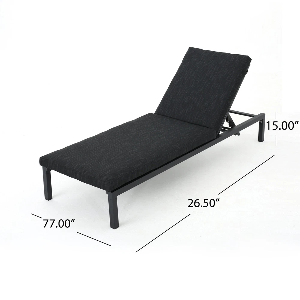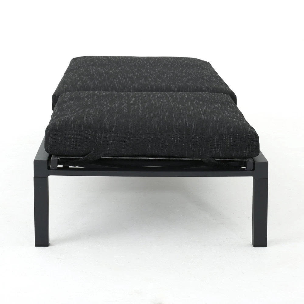Specifications Place of Origin #originPlace# Main Color DARK GREY Main Material Fabric+Metal Dangerous Goods #dangerFlag# Dimensions & Weights Assembled Length (in.) 77.00 Assembled Width (in.) 27.00 Assembled Height (in.) 10.25 Weight (lbs) 28.22 Product Features This aluminum lounge set is a wonderful way to add a modern touch to your patio. Featuring an aluminum frame with water resistant cushions upon which to sit, this set is a fresh take on a classic look. Relax all summer long in your backyard with your favorite book and enjoy the fresh air and sun with this lounge set. Each chaise is crafted from weather-resistant aluminum in a sleek dark gray finish, making it perfect for your patio or poolside. The lounges feature a completely flat reclining position, ensuring maximum comfort as you unwind. They're foldable and stackable, allowing for easy storage when not in use. We love that the set includes two cushions with 100% polyester covers and foam filling, providing a cozy touch to your outdoor experience. With a weight capacity of 250 lbs., these chaise lounges offer a contemporary and functional addition to your outdoor space. Description