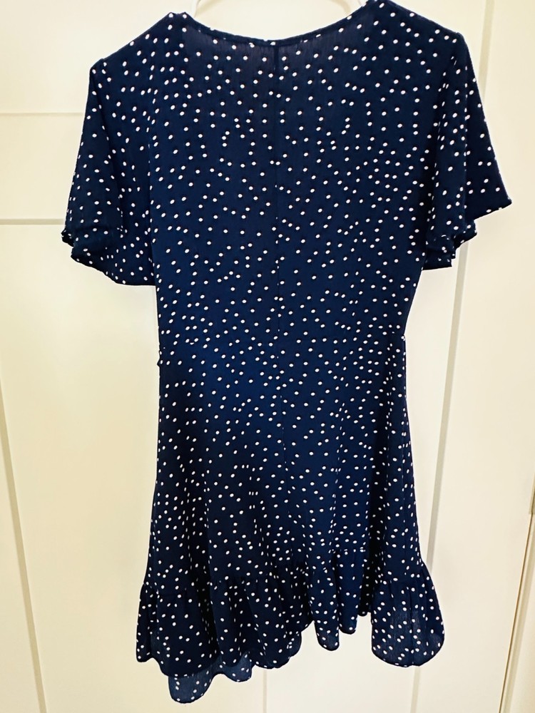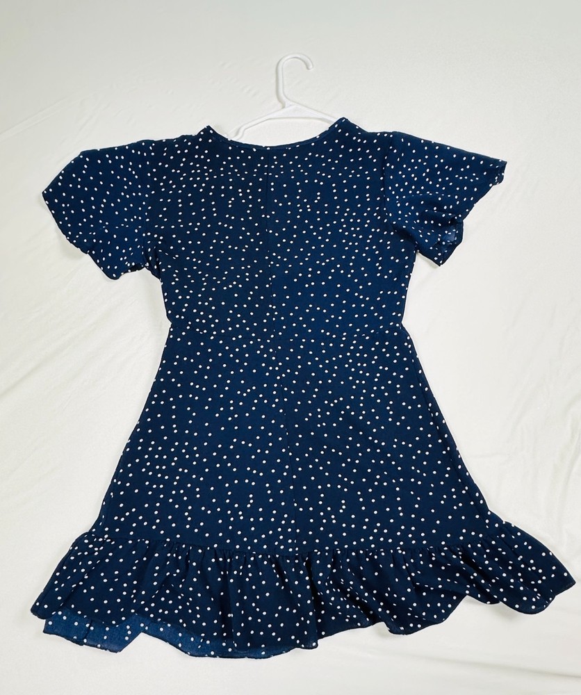 This stylish women’s navy blue wrap dress with a classic white polka dot print is perfect for both casual outings and semi-formal occasions. Designed with short flutter sleeves, a flattering v-neckline, and a ruffled hem, this dress creates a feminine and timeless look. Made from a comfortable polyester-spandex blend, the dress provides a soft feel with just the right amount of stretch. Easy to wear with its wrap closure, making it versatile for various body shapes. Pair it with heels for a dressy look or sandals for a casual chic outfit.