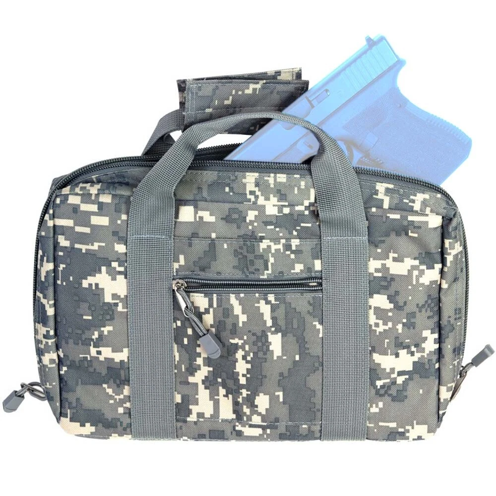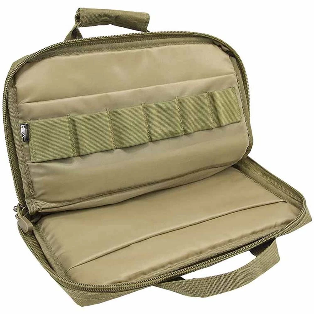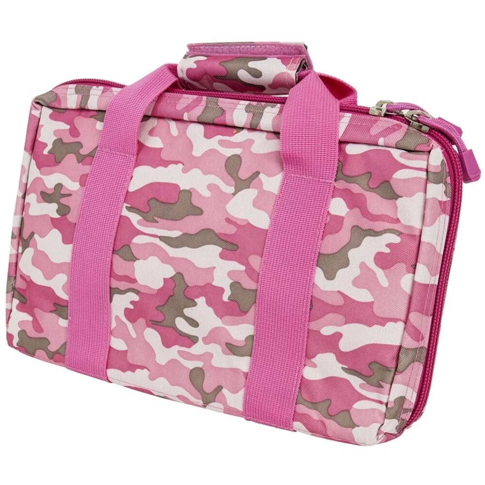 NcSTAR VISM is a manufacturer of high quality tactical accessories. They have been manufacturing high quality products since 1997. They are dedicated to providing customers with top of the line pouches, optics, and tactical equipment for the most affordable price out there. The NcSTAR Discreet Pistol case is the ideal solution to storing and taking your pistols on your trip to the range. The case is composed of a heavy duty nylon construction that is durable and will withstand most wear and tear you put it through. The case features 2 padded pistol compartments. The compartments are large enough to hold a full size pistol in each. The case also features elastic loops for magazine storage. Item Condition - Brand New in packaging Manufacture: NcSTAR Colors: Black, Black / Pink, Black / Purple, Blue, Digital, OD Green, Pink Camo, Tan, Urban Gray, Woodland Camo Size: 12.5"L x 2.25"W x 7"H Weight: 10 oz Features: - Holds 2 pistols at a time - Padded pistol compartments for protection for your pistols - 6 elastic loops for magazine storage (can hold up to 6 double stack or 12 single stack magazines) - Heavy duty wrap around handles - Small front pocket for additional storage - Lockable metal zipper pulls - Heavy duty zippers