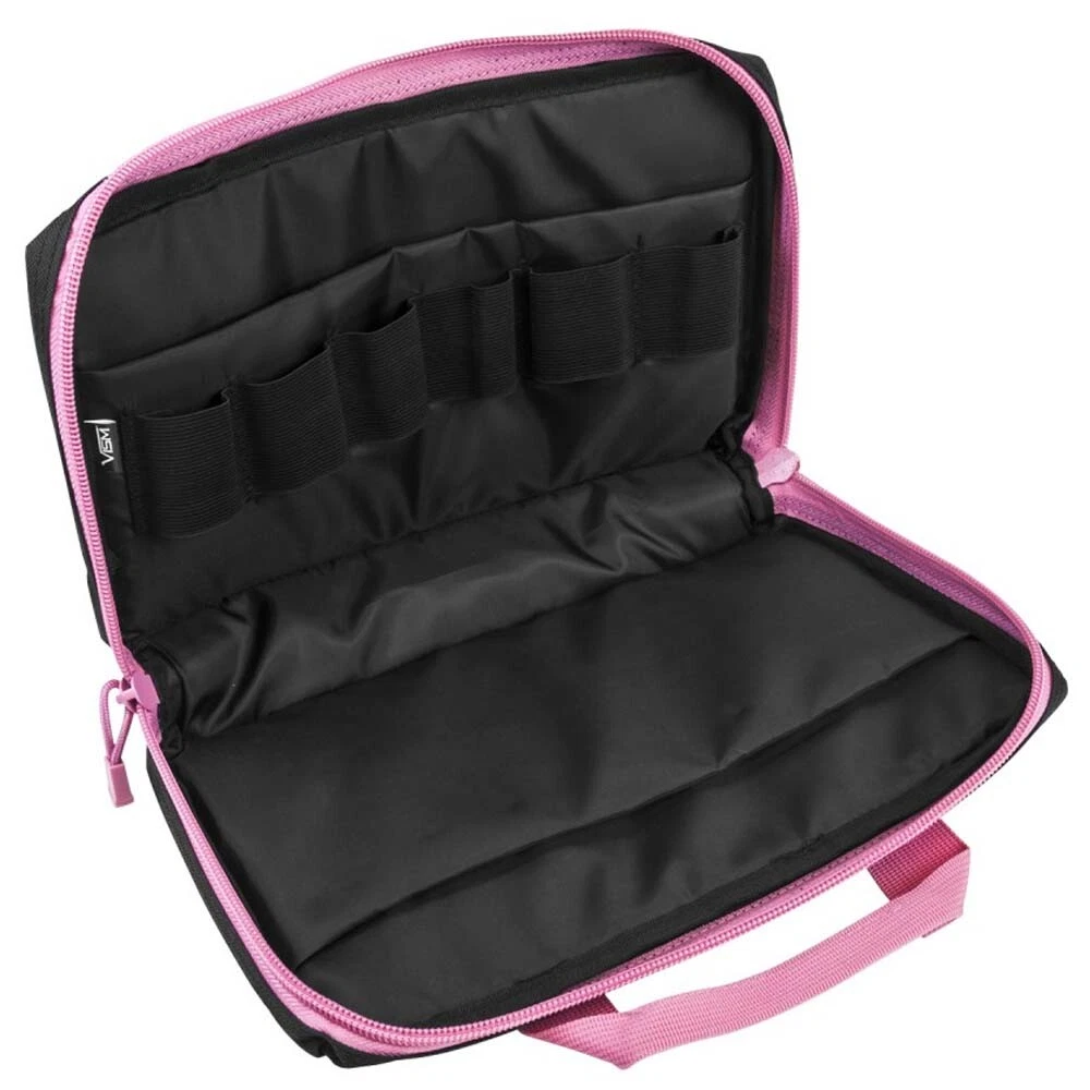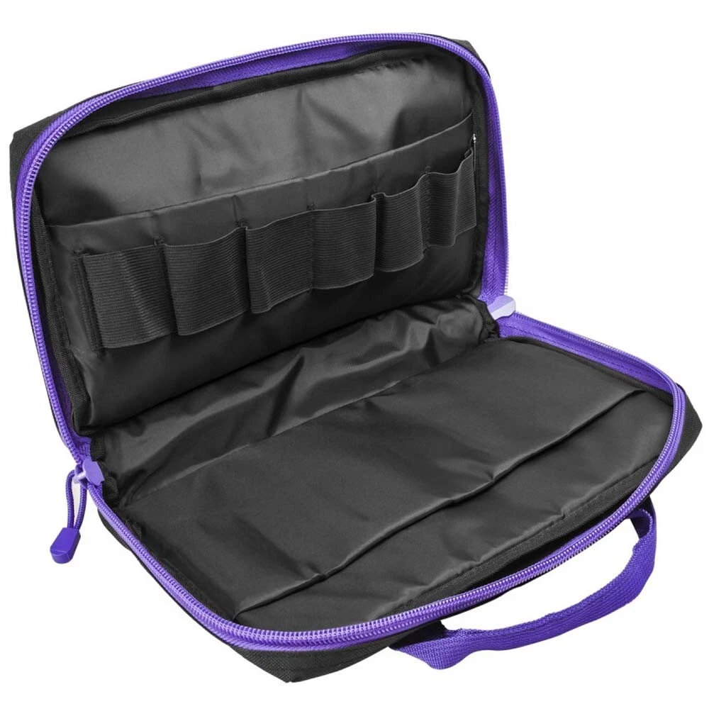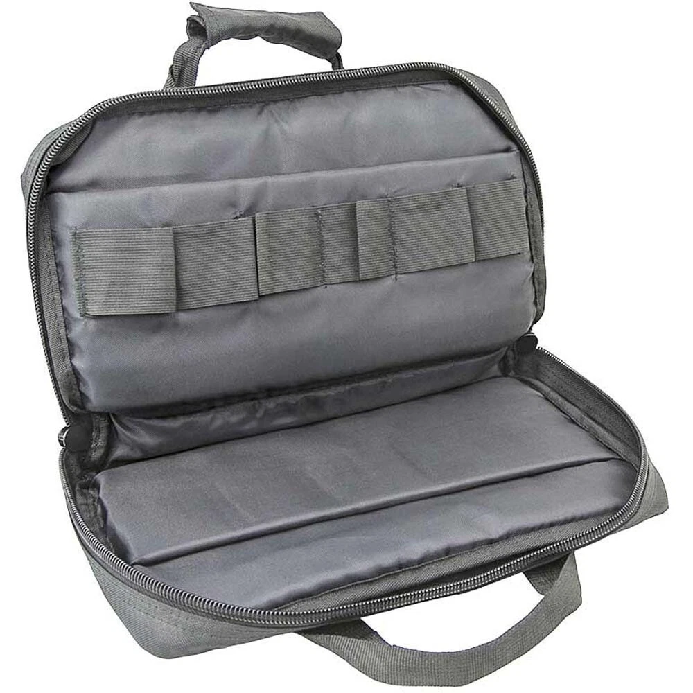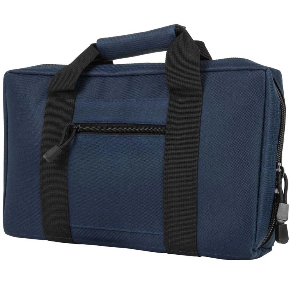 NcSTAR VISM is a manufacturer of high quality tactical accessories. They have been manufacturing high quality products since 1997. They are dedicated to providing customers with top of the line pouches, optics, and tactical equipment for the most affordable price out there. The NcSTAR Discreet Pistol case is the ideal solution to storing and taking your pistols on your trip to the range. The case is composed of a heavy duty nylon construction that is durable and will withstand most wear and tear you put it through. The case features 2 padded pistol compartments. The compartments are large enough to hold a full size pistol in each. The case also features elastic loops for magazine storage. Item Condition - Brand New in packaging Manufacture: NcSTAR Colors: Black, Black / Pink, Black / Purple, Blue, Digital, OD Green, Pink Camo, Tan, Urban Gray, Woodland Camo Size: 12.5"L x 2.25"W x 7"H Weight: 10 oz Features: - Holds 2 pistols at a time - Padded pistol compartments for protection for your pistols - 6 elastic loops for magazine storage (can hold up to 6 double stack or 12 single stack magazines) - Heavy duty wrap around handles - Small front pocket for additional storage - Lockable metal zipper pulls - Heavy duty zippers