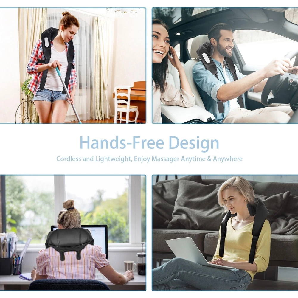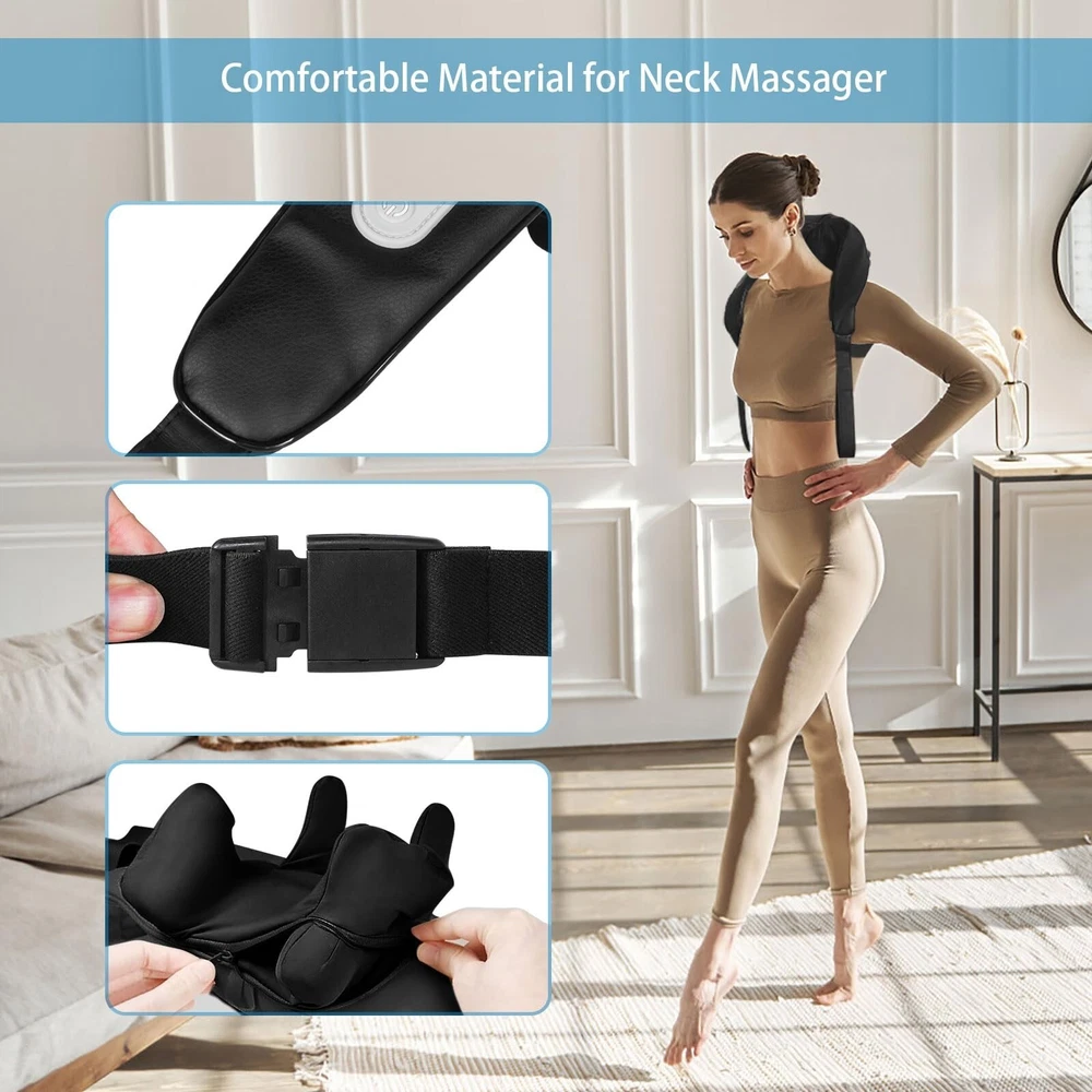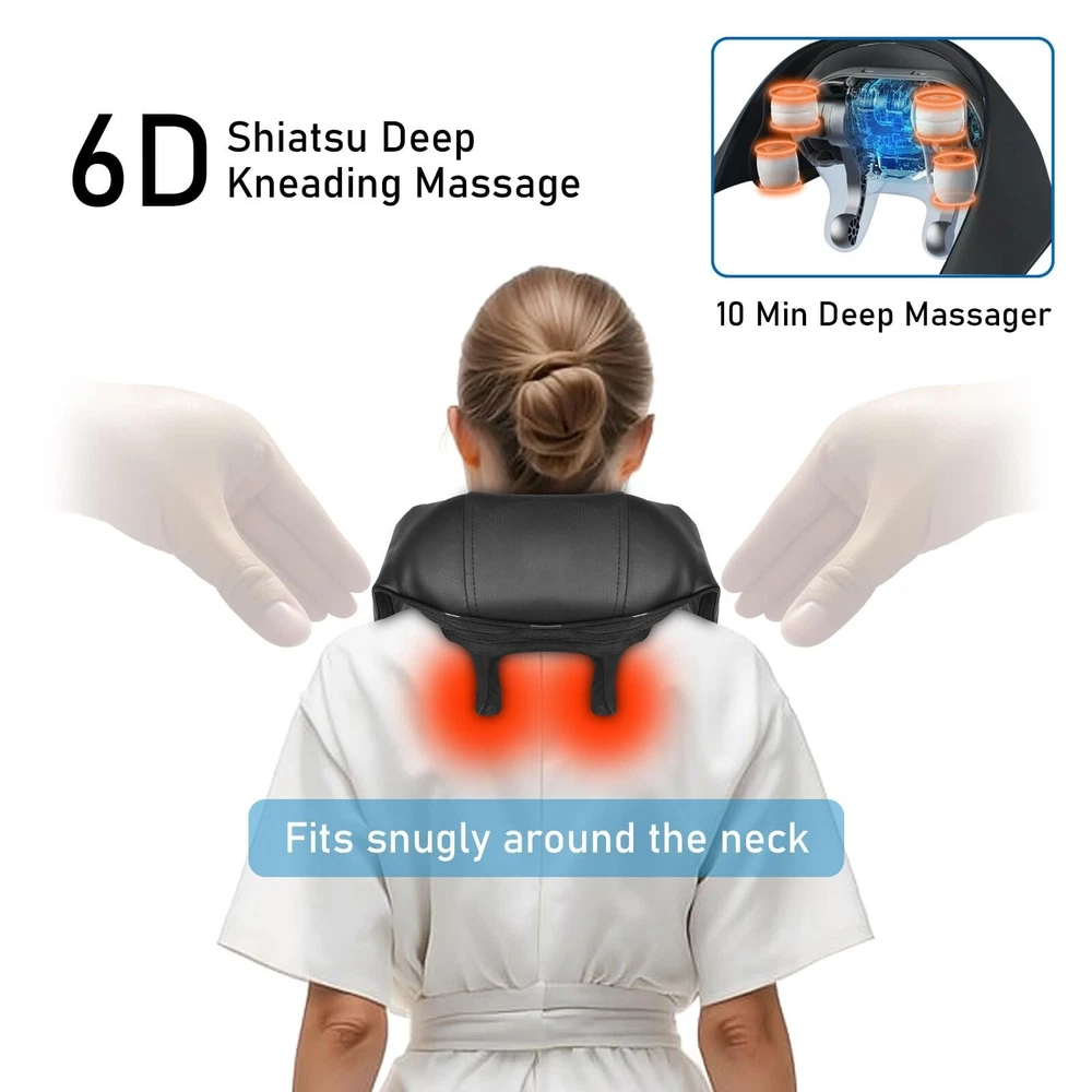 Neck and Shoulder Deep Tissue Massager, Cordless Deep Kneading Massagers with 6 Massage Nodes, Shiatsu Neck Back Shoulder Massager with Heat for Traps, Back & Leg, Gifts for Men Women, Home Use Product Details Power Source: Battery Powered Material: Leather Item Weight: 1.5 Kilograms Brand: BIBIRE Color: Black Product Dimensions : 10.23 x 6.3 x 6.9 inches; 3.31 Pounds Item model number : KT2 Batteries : 1 Lithium Polymer batteries required. (included) Date First Available : April 23, 2024 Manufacturer : BIBIRE Country of Origin : China Innovative 4D Deep KneadingIntroducing an upgraded neck and shoulder massager with 4D kneading technology, simulating deep human-like massages. It covers a wider massage area, extending from the neck to the trapezius and shoulders. Engineered with 6 ergonomic massage nodes, it providing continuous and powerful massage pressure to provide your neck and shoulder with the comfort it deserves. Adjustable Gentle HeatingEnjoy a soothing experience with the BIBIRE Neck Massager's adjustable heating function offering two settings (104F/120F) to gently warm the neck and shoulders, promoting relaxation. Auto-shutdown after 10 minutes ensures safety during use, preventing overheating. Hand-free DesignDesigned for flexibility, this neck and back massager can be handheld or back packed with the strap for various usage scenarios. Compact and portable, it easily fits into standard travel, office, home, or carry-on bags. Cordless Massager - Type-CThis cordless neck massager operates without the need for a power plug. A single charge provides 70-80 minutes of continuous relaxation massage, freeing you from the constraints of cords. Ideal GiftThe neck and back massager chair makes for an excellent gift for parents, friends, family, or elders on holidays, birthdays, Christmas, anniversaries, Father's Day, or Mother's Day. Give the gift of comfort and relaxation anytime, anywhere.