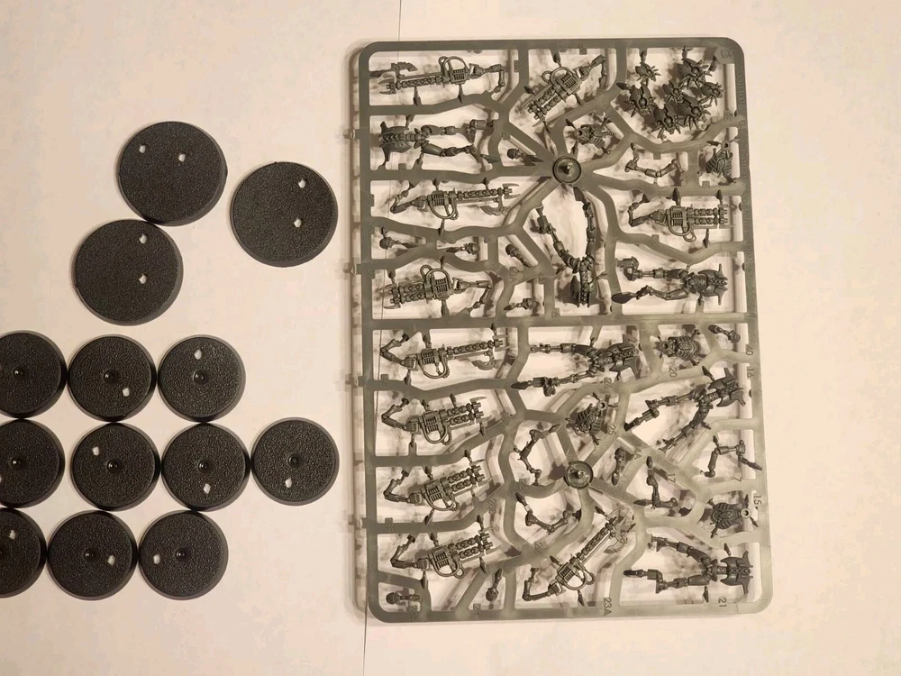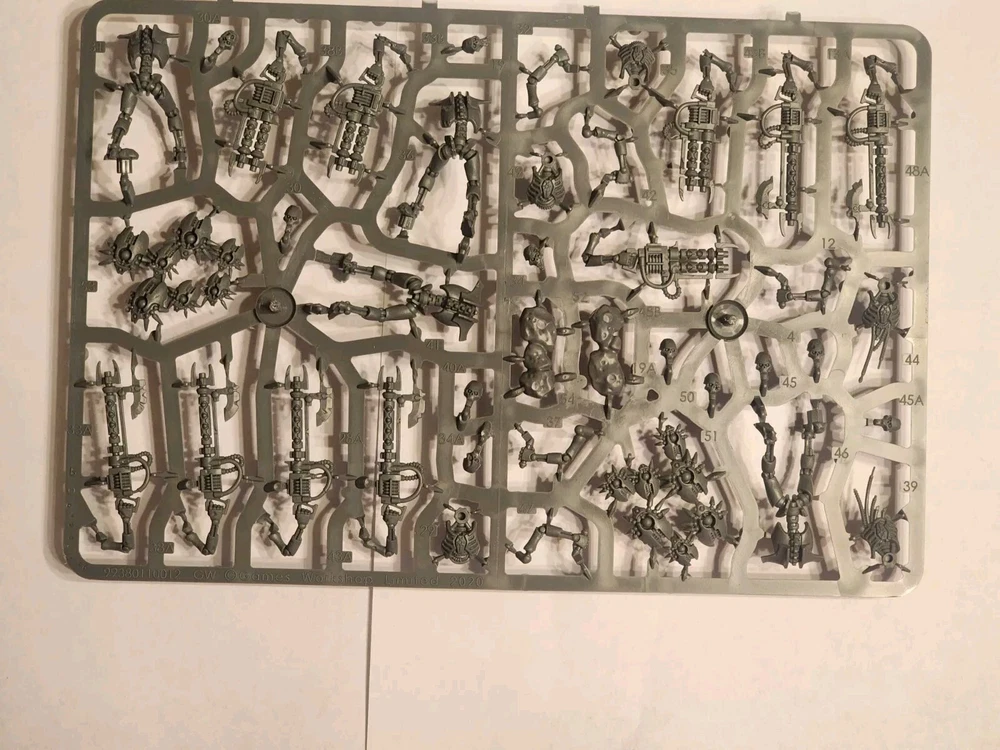 This squad features Necron Warriors with Canoptek Scarabs, all on sprue, unassembled and unpainted miniature form. Included in this bundle are 10 Necron Warriors and 3 Canoptek Scarabs, all still on their original sprue. This is a fantastic opportunity to add some new pieces to your Warhammer 40K collection without breaking the bank. Don't miss out on this chance to enhance your miniature army!