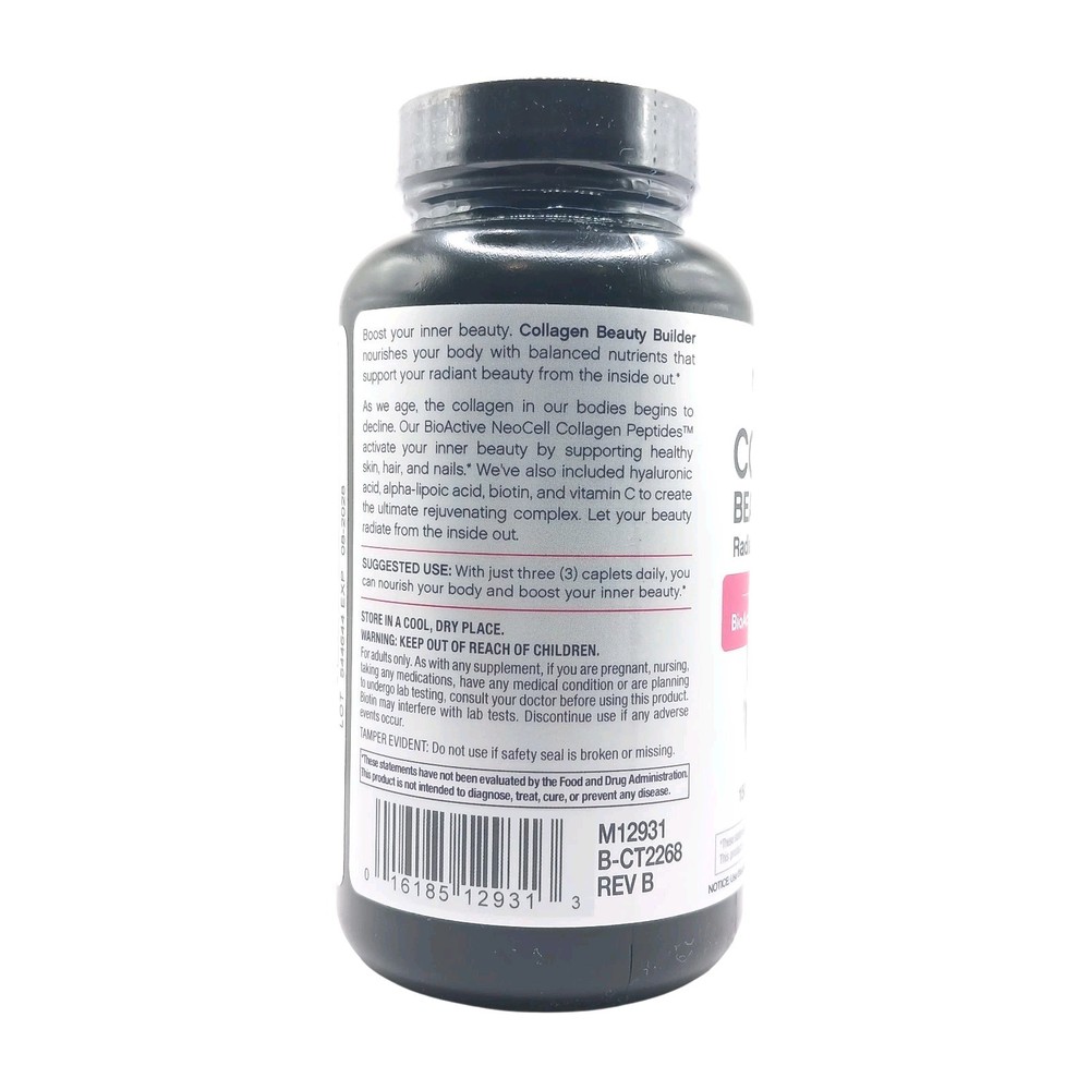 NeoCell Collagen Beauty Builder Radiant Skin & Strong Nails 150 Caplets Exp 8/2028 📦 Product Description Enhance your daily beauty routine with NeoCell Collagen Beauty Builder , a popular supplement formulated to support healthy-looking skin and strong nails when used as directed. This advanced formula features BioActive Collagen, Alpha Lipoic Acid (ALA), and Biotin in convenient caplets. This listing is for a brand-new, factory-sealed bottle with a long expiration date of August 2028 , ensuring freshness and value. ✅ Key Features & Highlights Brand: NeoCell Product Type: Dietary Supplement Formula: Collagen Beauty Builder Key Ingredients: BioActive Collagen, ALA, Biotin Caplet Count: 150 Caplets Support Focus: Skin & nail appearance support Expiration Date: 08/2028 Condition: New / Sealed Not a bundle – single unit listing 🌟 Why Choose NeoCell? Trusted brand specializing in collagen supplements Easy-to-take caplet form Designed for daily beauty support as part of a healthy lifestyle Long shelf life—buy with confidence 🚚 Shipping & Handling FREE SHIPPING FAST Same-Day Handling Securely packaged for safe delivery