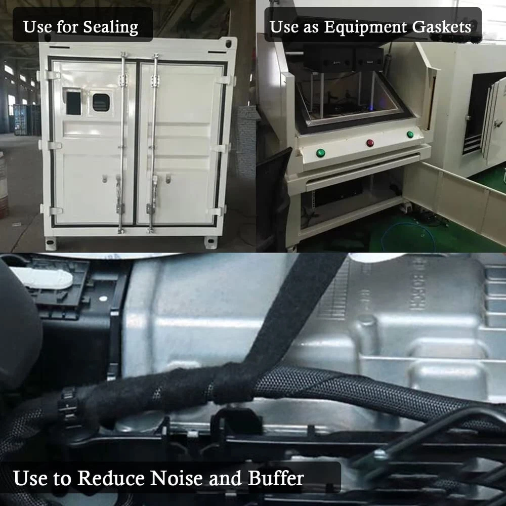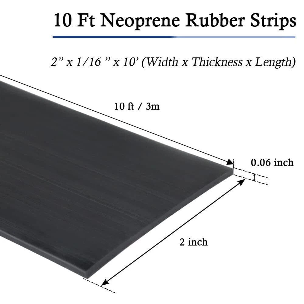 Adhesive Solid Rubber Sheets, Rolls & Strips High-quality & Durable & Flexible Material Made of high quality solid rubber material, tear-resistant and long-lasting, black color with smooth finish on both sides. Neoprene rubber strip has high tensile strength, excellent heat resistance, aging resistance, vibration and sound reduction. High Temperature & Fire Resistant It has the characteristic of self-extinguishing away from the fire. It can remain firm and flexible in various extreme conditions. Easy to Use It can be easily cut to your needed length with a scissor and bent easily into any shape for its excellent durability and flexibility. Widely Used Suitable for most DIY projects like floor cushioning, gaskets making, sealing, electric and water insulation, vibration and sound reduction, heat insulation, weather stripping and so on. It is widely used in house, commercial area, industry and perfect for daily use. Note: Kindly please note that the neoprene rubber material itself has a slight smell, just leave it outside for 1-2 days and the smell will gradually disappear. To keep the best performance, there might be a little oil on the surface of the rubber strips. It can be wiped off at any time if needed. 【Quality Rubber Material】The Adhesive Rubber Strips are made of high quality solid rubber material, tear-resistant and long-lasting, black color with smooth finish on both sides, which is quite different from the ordinary sponge or foam strips. 【Excellent Durability & Flexibility】The Adhesive Backed Rubber is aging resistance from weather while maintaining its flexibility, strength, durability, flexing and twisting quite well over a wide temperature range and condition with its outstanding toughness. Reducing unnecessary friction between the objects with its good wear resistance. 【Self-adhesive Backing】The Rubber Strips with Adhesive Backing are attached with strong self-adhesive backing, which is much more convenient and easier to use. It is ideal for various DIY home and industry projects. 【Multifunctional Usage】The Rubber Seal Strip is designed for gaskets making, floor cushioning, sealing, electric and water insulation, vibration and sound reduction. It can be easily applied to industrial applications that need flexible rubber components. It is also a perfect option for DIY weather stripping, crafts, sports equipment, sealing plumbing. 【Easy to Cut】The size of the Adhesive Rubber Sheet is 118" long ×2" wide×1/16" thick. It can be easily cut to your needed length with a scissor and bent easily into any shape for its good pliable property.