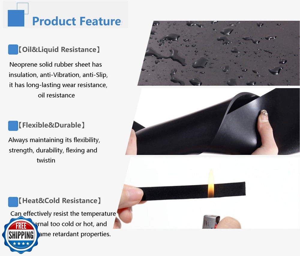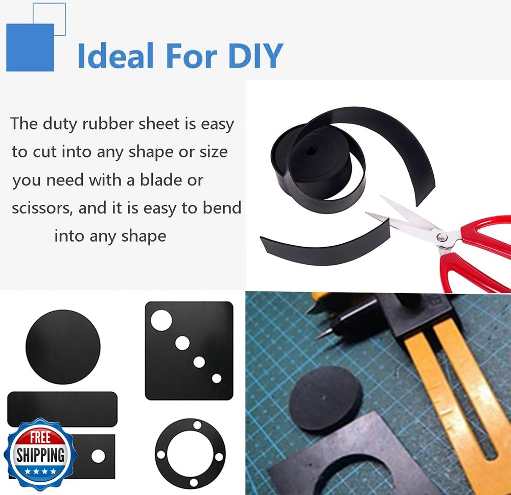 Neoprene Rubber Strips Solid Rubber Sheets, Rolls and Strips for DIY Gaskets Crafts Pads Seals Warehouse Flooring Weather Stripping 17.5"x36"x1/16 Features 【HIGH QUALITY】The neoprene solid rubber sheet has insulation, anti-Vibration, anti-Slip, extraordinary durability, stretchability and strength ,it has long-lasting wear resistance, oil resistance. It remains strong and flexible under various temperatures and conditions, it can effectively resist the temperature from external too cold or hot, and also has flame retardant properties. 【VERSATILE USE】Our rubber sheet for DIY gaskets, pads, seals, crafts, flooring, shockproof, and soundproof cushioning. It is applications include belting, sound-proofing. with long lasting and resistant to abrasion and oils. can be used to seal, and even protect your floors with its cushioning properties like. Also can be used for speakers, sports equipment, vents, automobiles, ships, etc. through its cushioning properties 【EASY TO CUT】The duty rubber sheet is easy to cut into any shape or size you need with a blade or scissors, and it is easy to bend into any shape, suitable for any DIY project. Like cushion and insulate plumbing and to create a barrier and seal them. 【CHARACTERISTIC】Smooth and clean on both sides. High quality packaging, Easy to clean using any everyday cleansers or cleaning implements. It is worth showing off that our product does not have a pungent smell like ordinary products 【ABOUT US 】Over 10 years manufacturing experience, we have an experienced R&D team, We can produce according to any of your requirements with the high quality and reasonable price. Our products and services will give you 100% satisfaction. Please contact us if you have any questions. Shipping Free & Fast Shipping: We offer free shipping to most of the USA with a normal delivery time of 3-7 days. However, due to the current situation, additional delivery time (up to 3 weeks) may be required for some items. Alternative Carriers: We may use alternative carriers (e.g., USPS, FedEx, UPS) to ensure your package arrives safely and on time. Due to the use of multiple carriers, we are unable to provide a tracking number automatically. Handling Time: Orders are processed and shipped within 1-2 business days of receiving cleared payment. Shipping Restrictions: Shipping to Alaska, Hawaii, Puerto Rico, Guam, and other US territories may incur shipping charges or delivery restrictions. Please contact us before ordering, or your order can be refunded/cancelled. State Restrictions: Certain items may not be shipped to California due to state regulations. Contact for Tracking Updates: If you require tracking updates or have any concerns about the delivery of your order, please feel free to contact us, and we will be happy to assist you. Return Policy 30-Day Hassle-Free Returns: If you are not completely satisfied with your purchase, you can return the item for free within 30 days of receiving it for a full refund or exchange. Easy Return Process: Contact us, and we will provide you with a prepaid return shipping label and detailed instructions. No Restocking Fee: There are no restocking fees for returns. However, the buyer is responsible for return shipping costs if the return is not due to a seller"s error. Refund Processing: Refunds will be processed within 1 business day of receiving the returned item in its original condition. Feedback Your feedback is extremely important to us. We strive to provide the best products and customer service possible. If you are satisfied with your purchase, please take a moment to leave us a positive review. If you have any concerns or issues with your order, please contact us before leaving negative feedback. We are committed to resolving any problems and ensuring your satisfaction. Contact Us If you have any questions or concerns, please feel free to reach out to our customer support team. You can contact us through the eBay messaging system. We are available Monday to Friday, 9:00 am to 5:00 pm EST, and we will do our best to respond to your inquiry within 24 hours. Thank you for supporting our small family business!